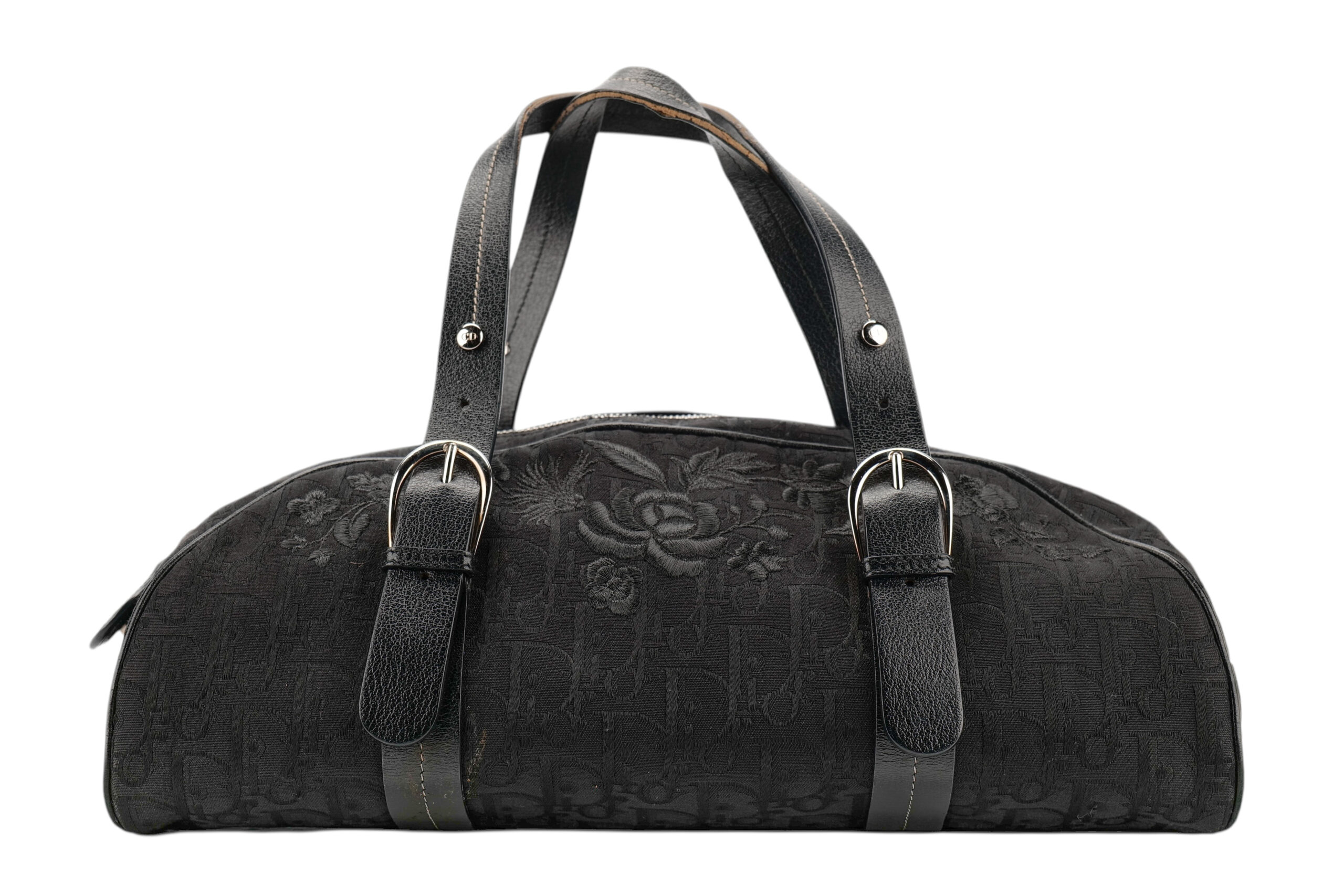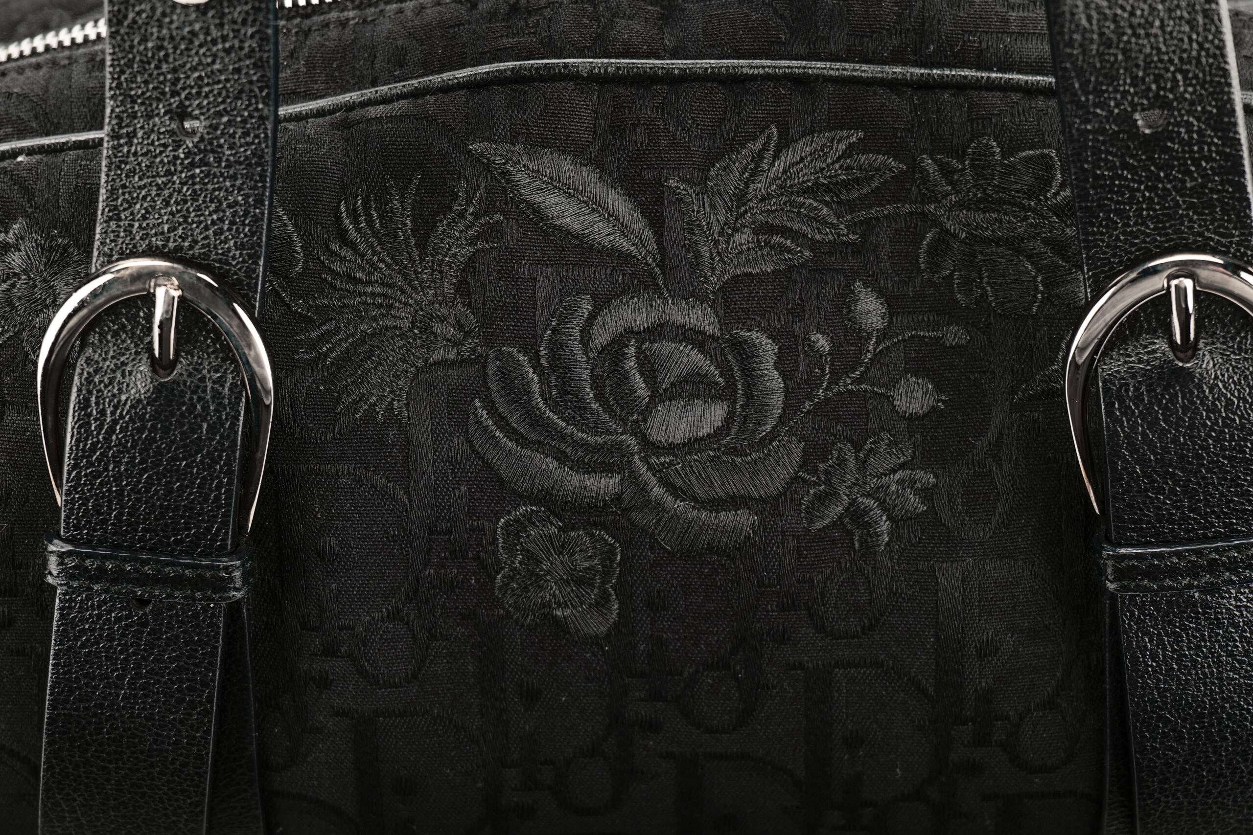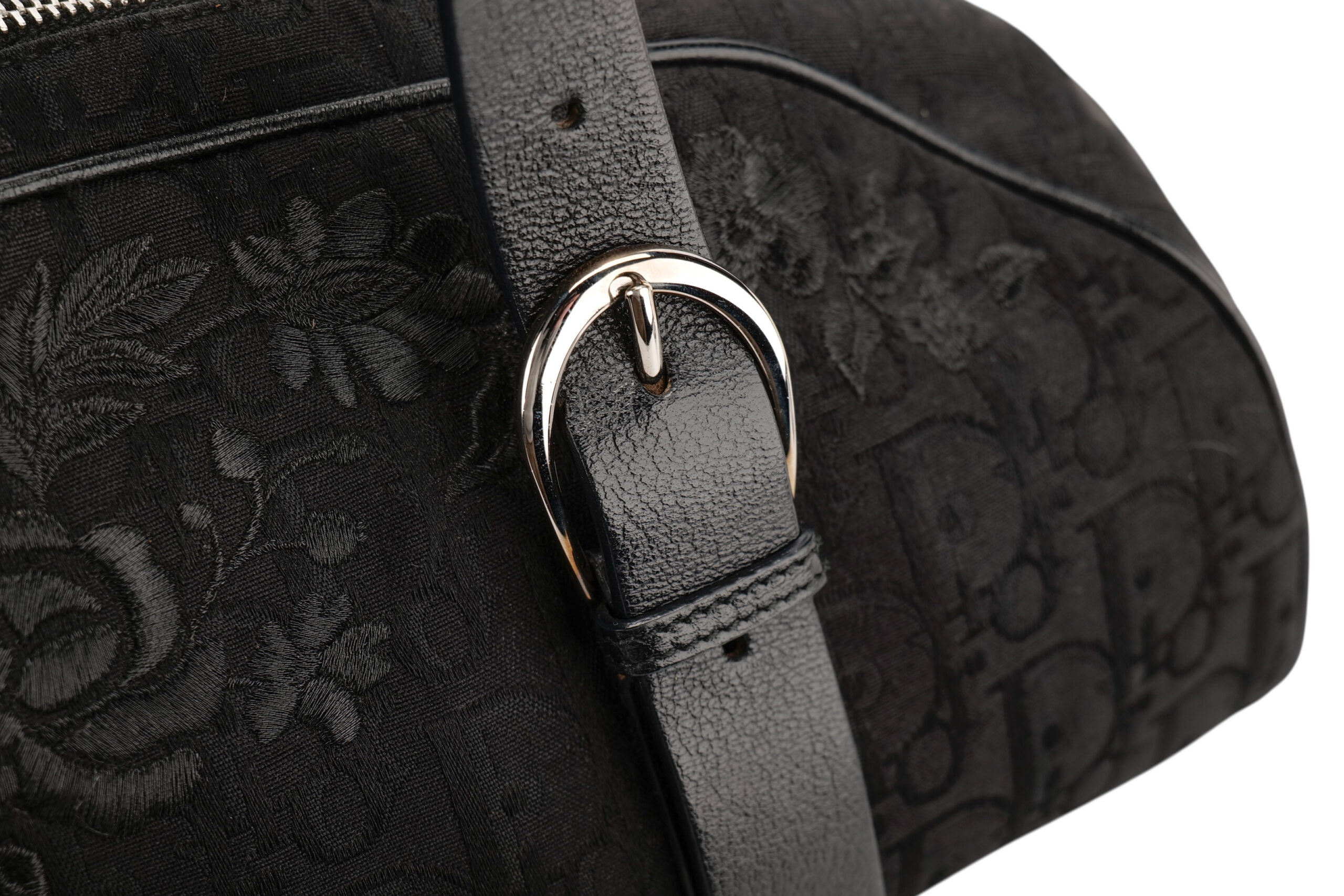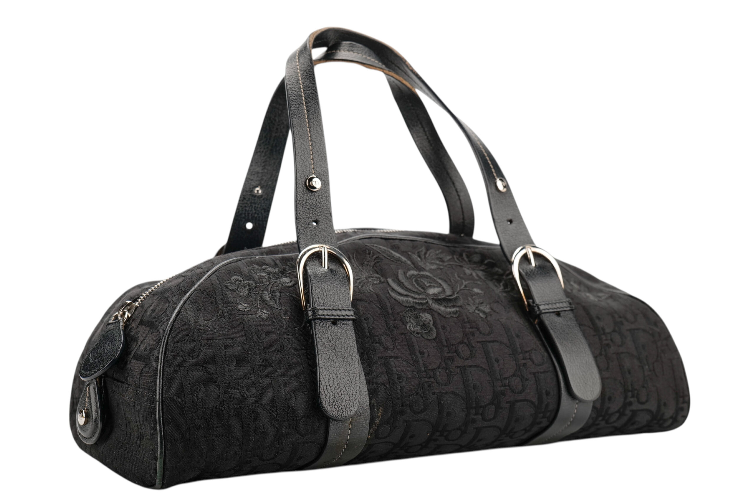 The Dior Romantique Trotter Bag in black Oblique canvas is a beautifully nostalgic piece that blends the house’s iconic monogram with soft, feminine detailing. The tonal floral embroidery layered over the classic Dior Trotter pattern gives the bag its “Romantique” charm — a subtle yet captivating touch that sets it apart from more traditional monogram styles. Its elongated, slightly curved silhouette is paired with structured leather straps featuring elegant silver-tone buckles, giving the bag a balanced mix of delicacy and refined edge. As with all Dior creations, the craftsmanship shines through in the precise stitching, rich textures, and harmonious design, echoing the brand’s heritage of Parisian sophistication.