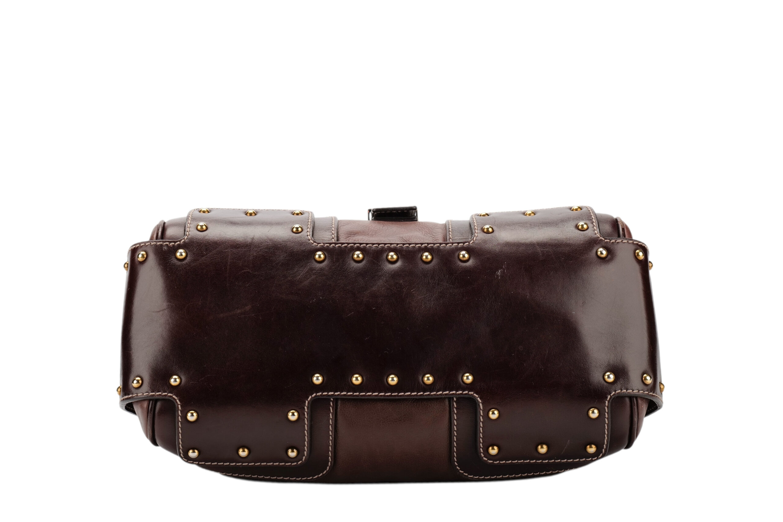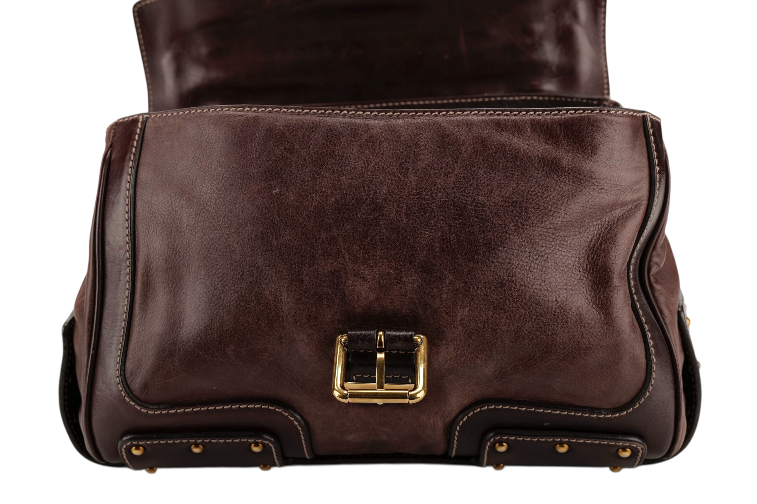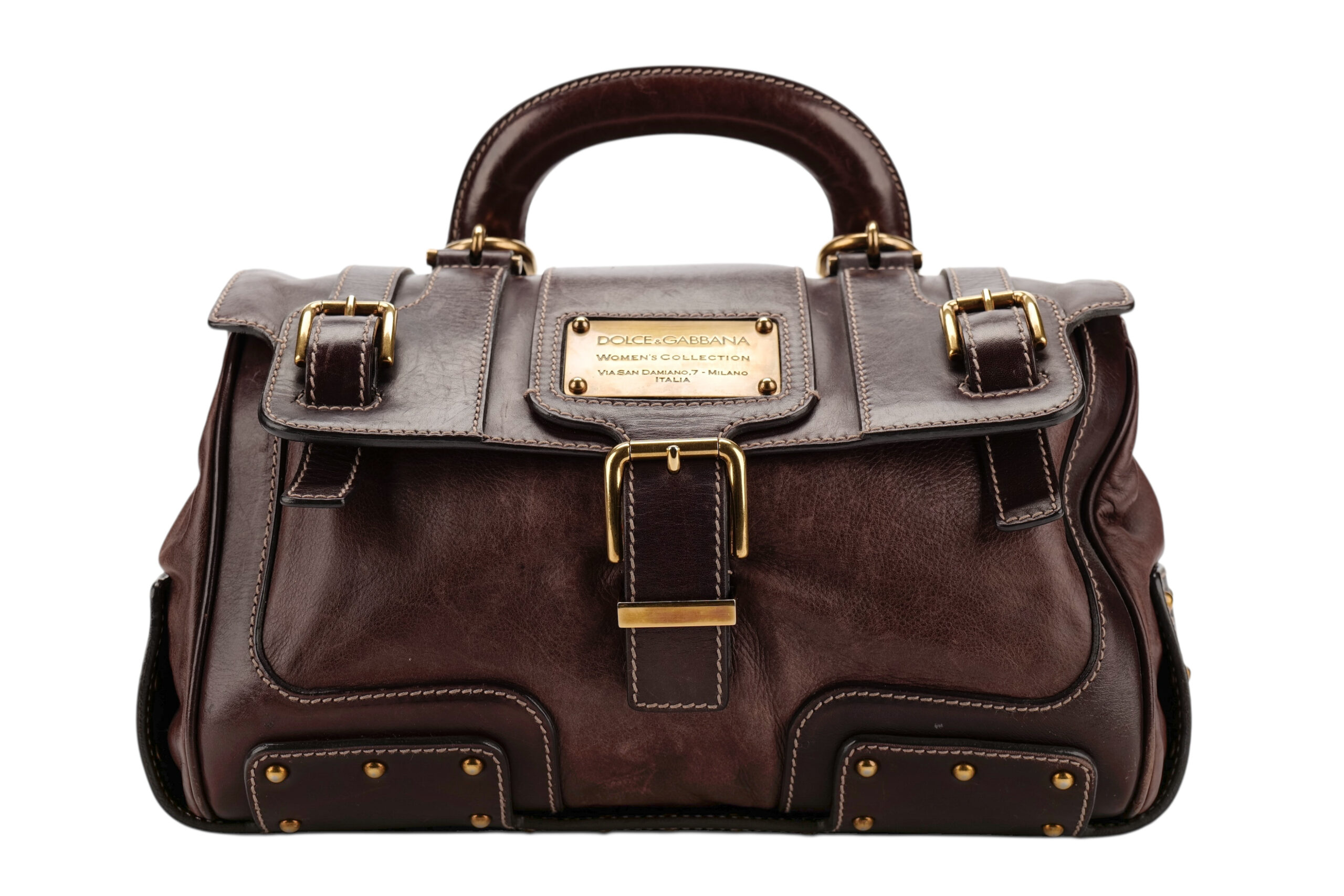 Dolce & Gabbana Via San Damiano Vintage Inspired Brown Leather Satchel, Gold Hardware