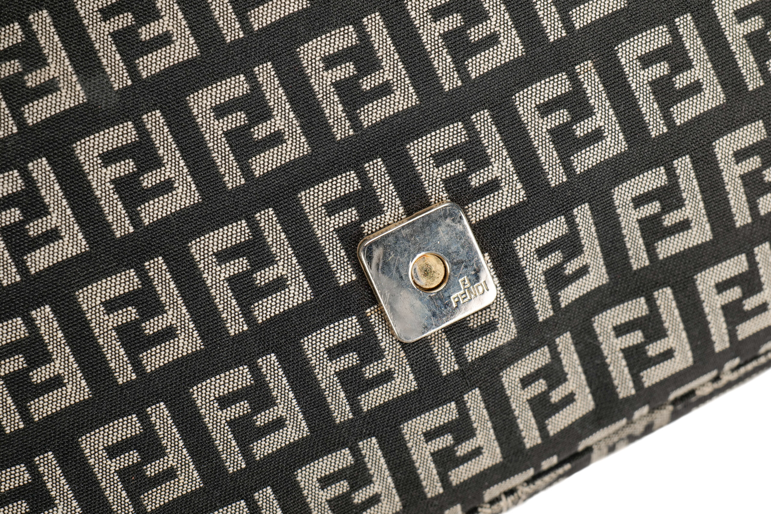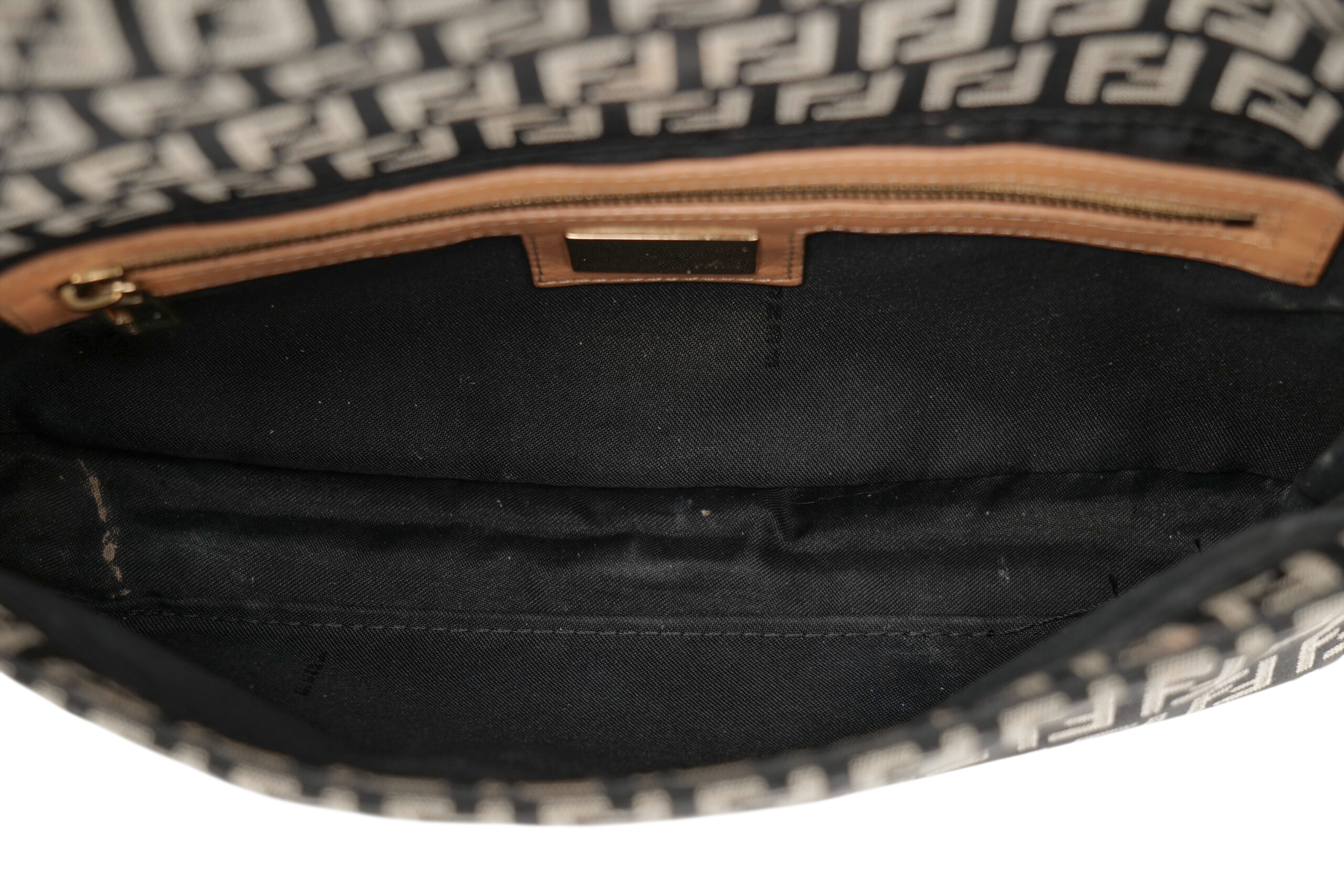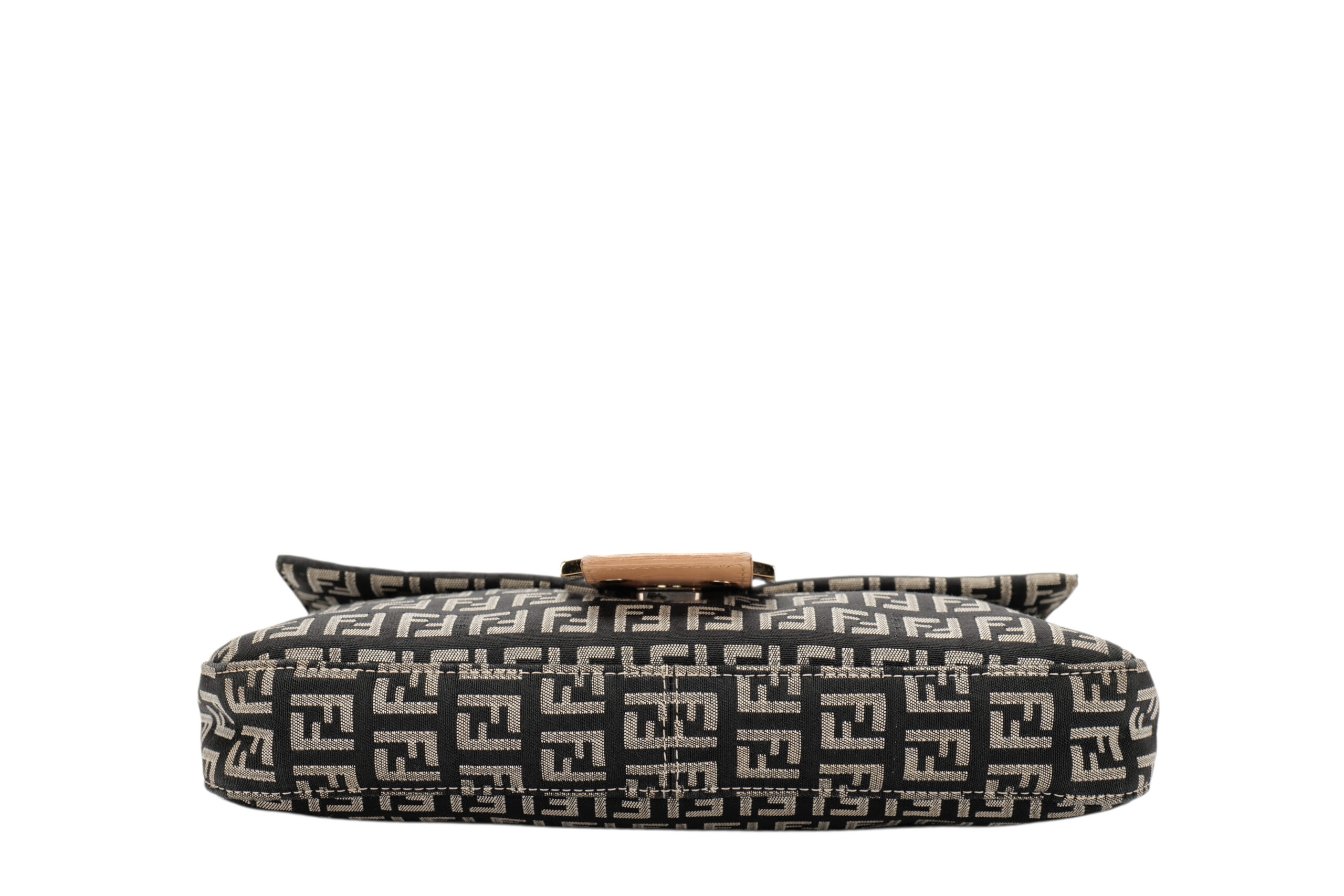 Fendi Baguette Zucca FF Black/Cream Canvas Handbag, Gold Hardware