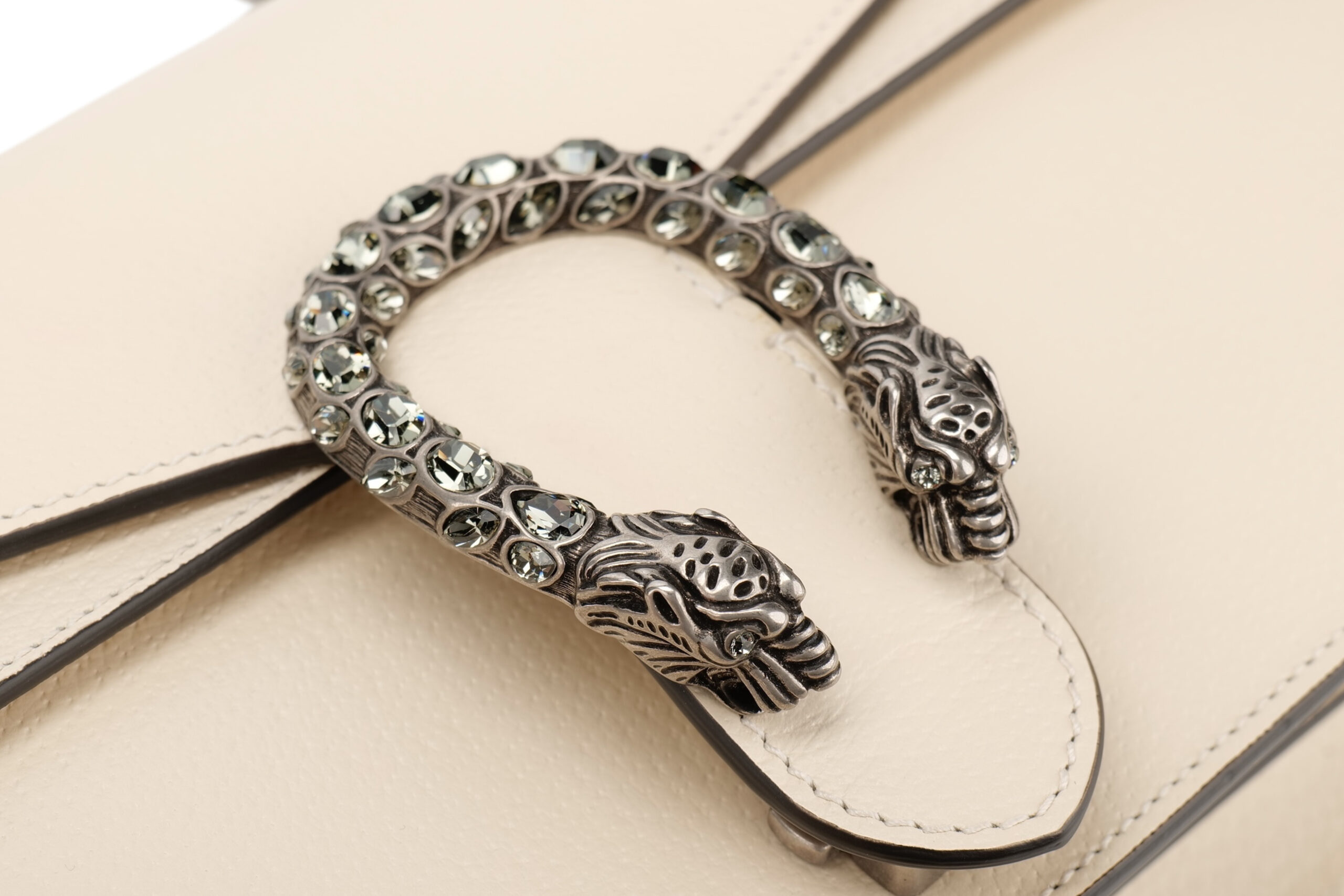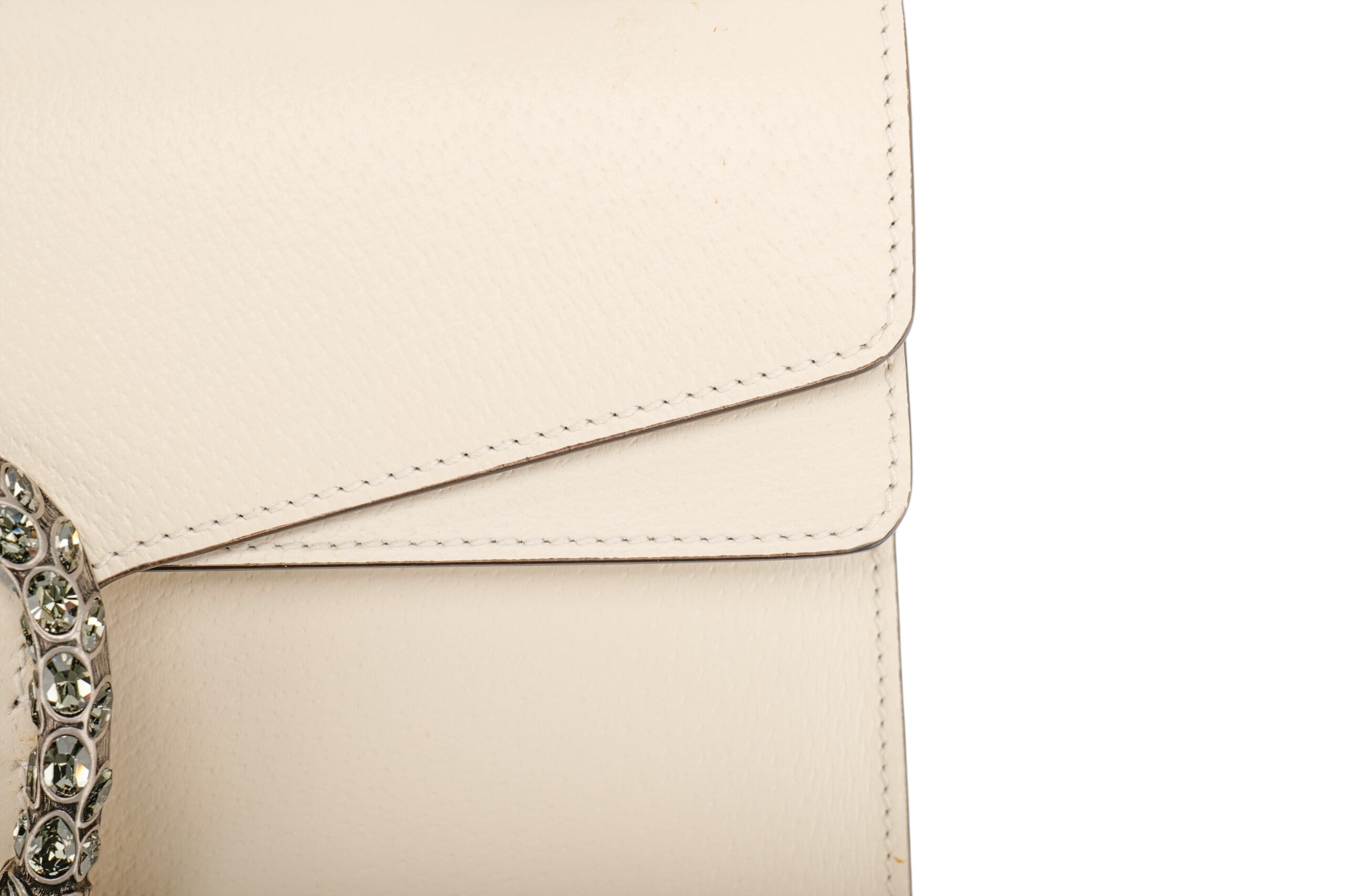 Gucci Dionysus Large White Leather Crystal Embellished, Silver Hardware