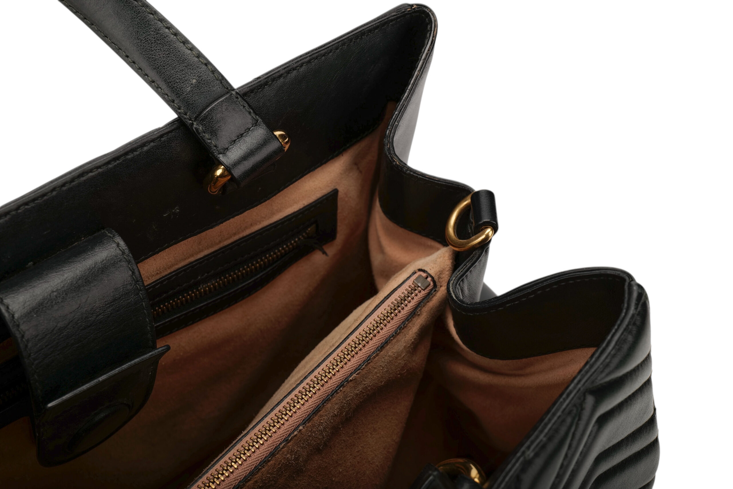 Gucci GG Marmont Medium Tote Bag Black Matelassé Leather, Gold Hardware