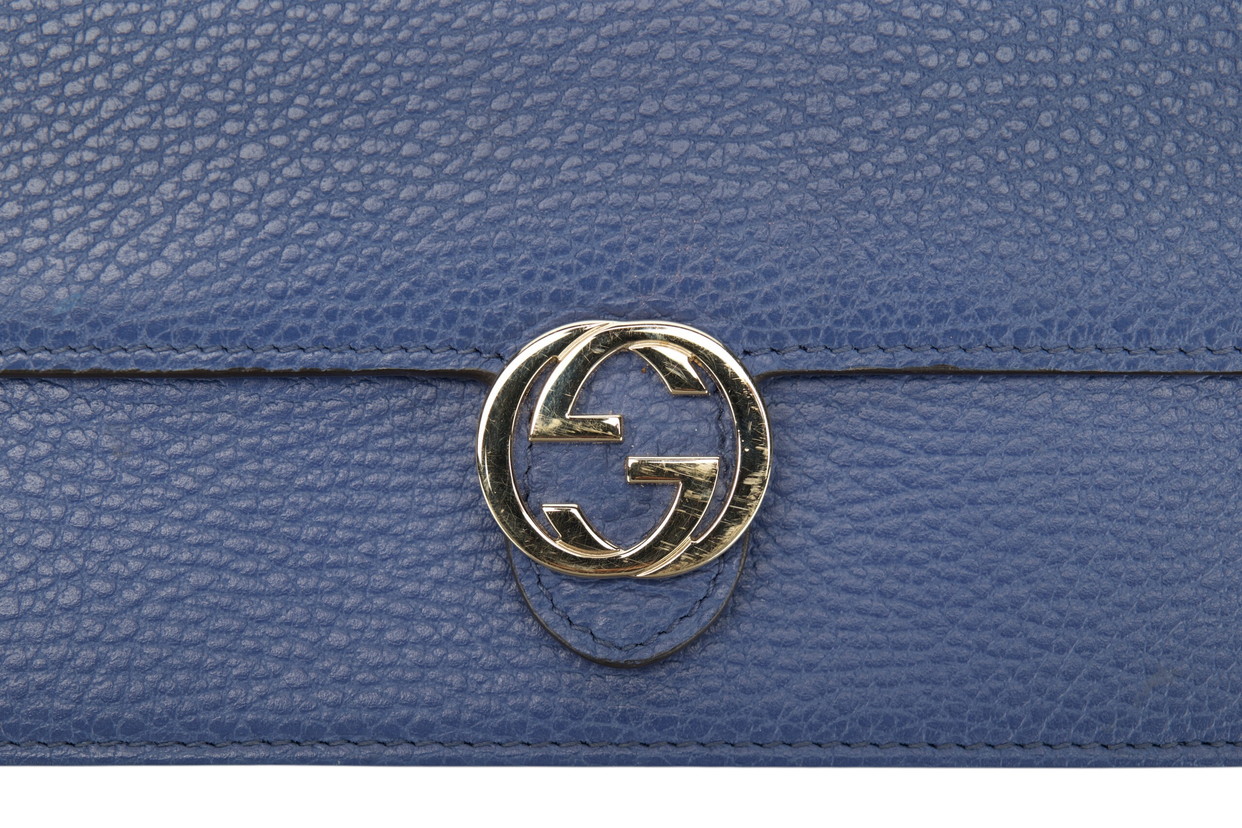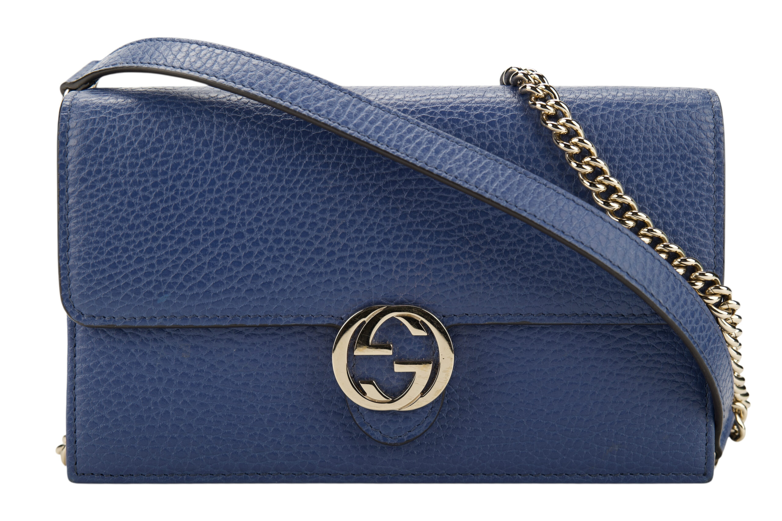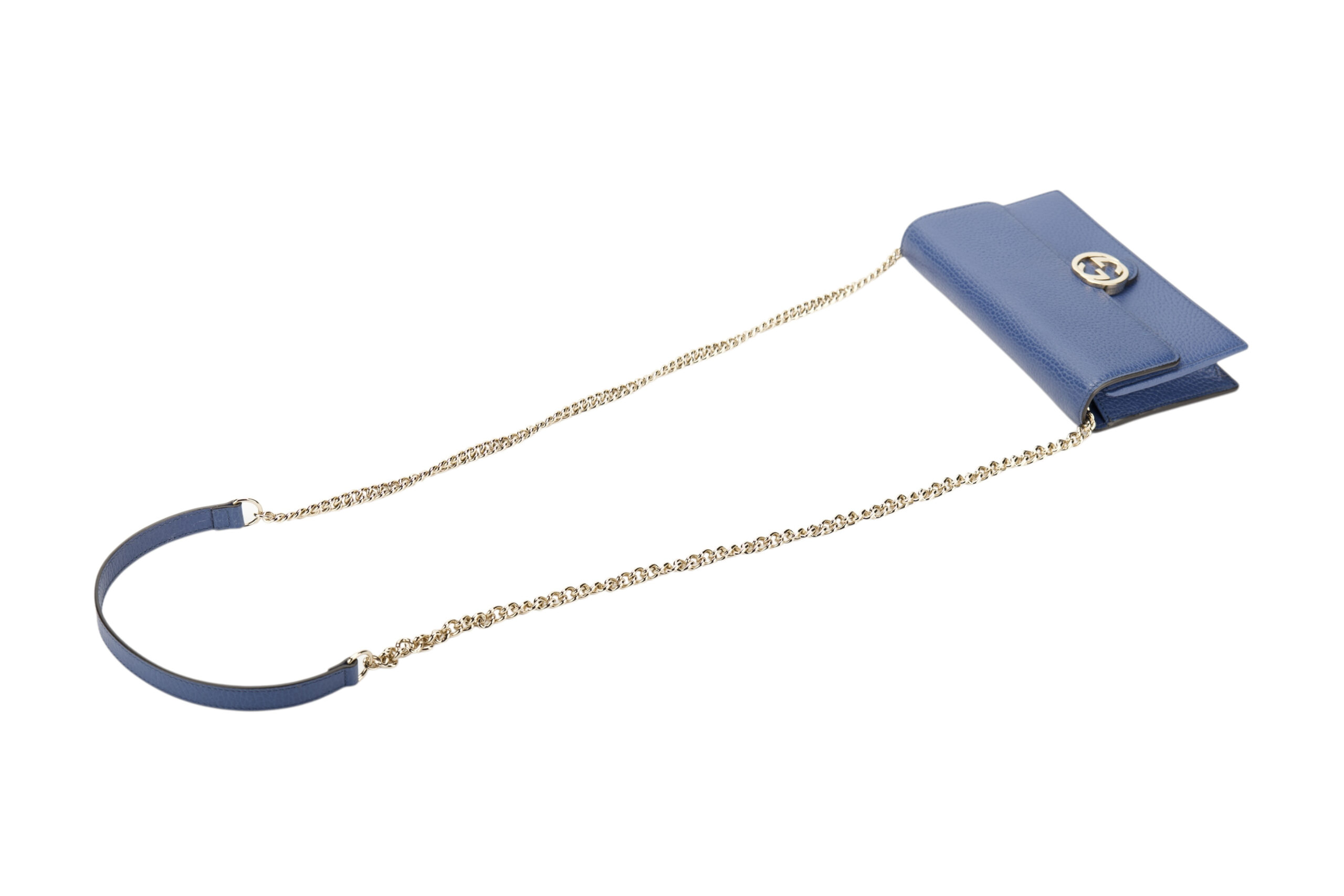 Gucci Interlocking GG Wallet on Chain (WOC) Blue Leather, Gold Hardware