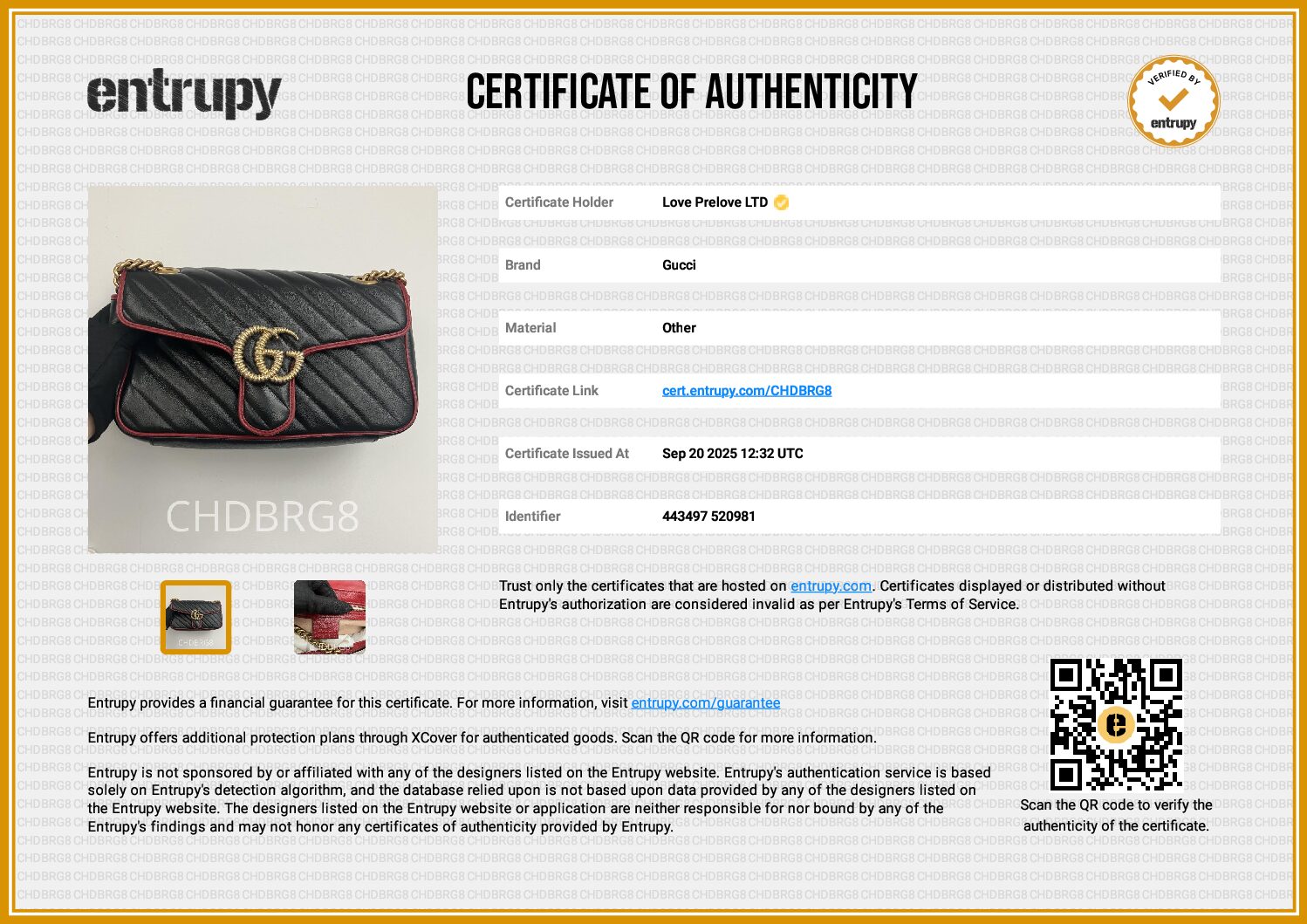 All bags sold via Love Prelove go through rigorous checks to ensure authenticity. All bags are sold with an authentication certificate either from Entrupy or Bababebi.