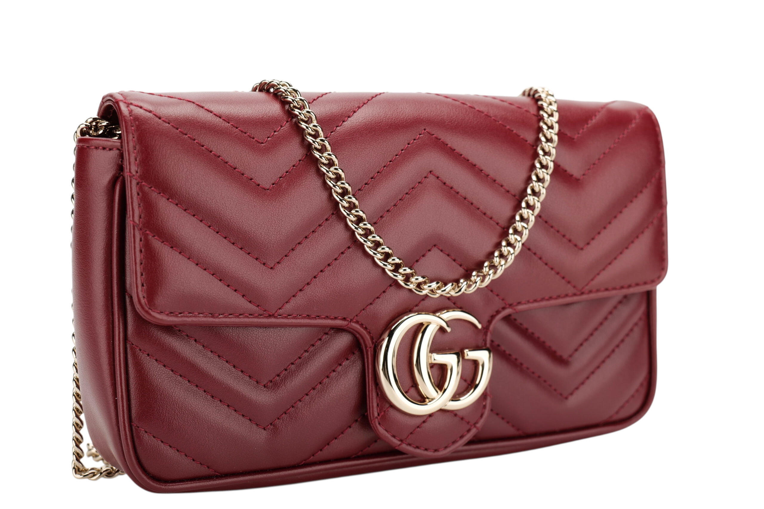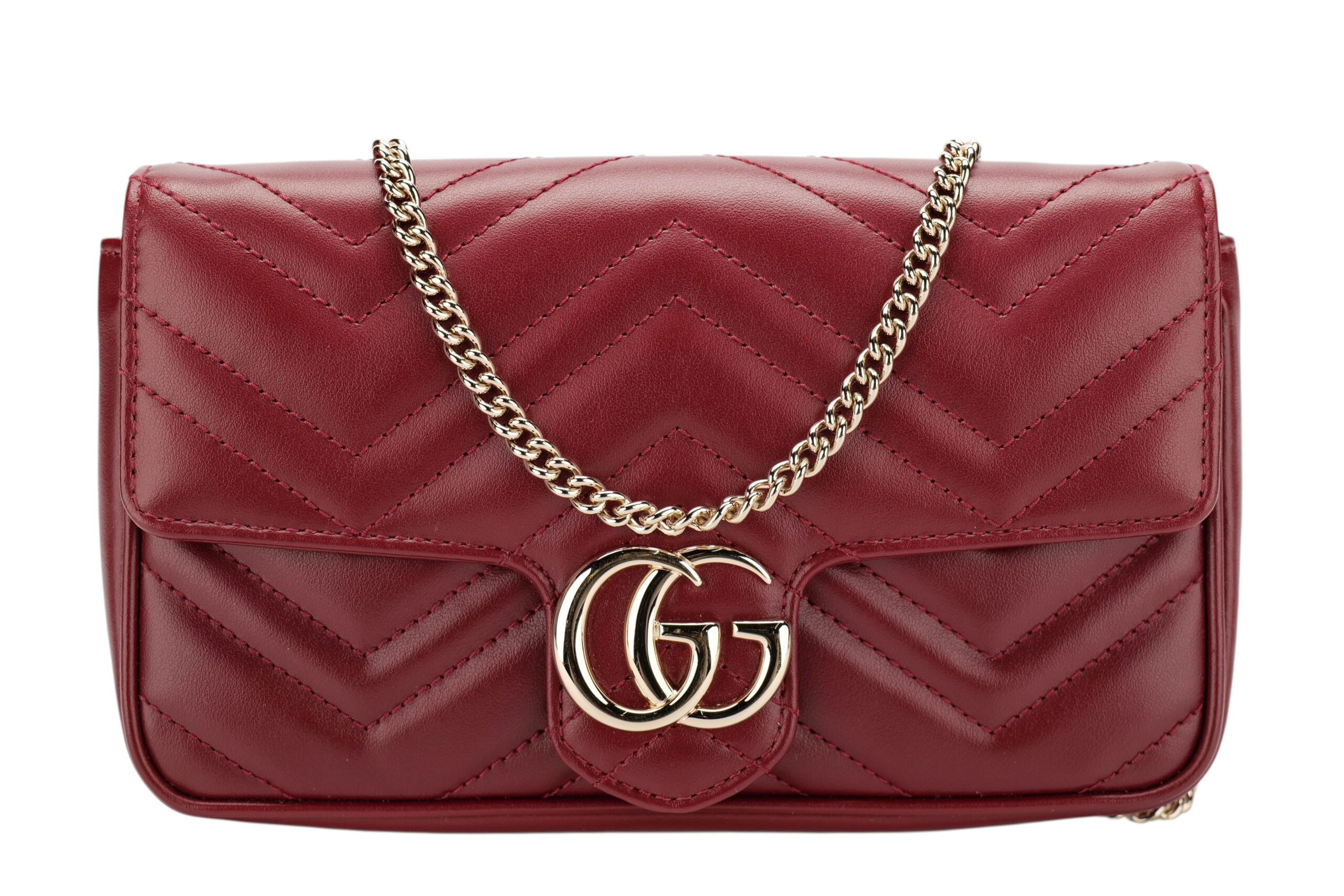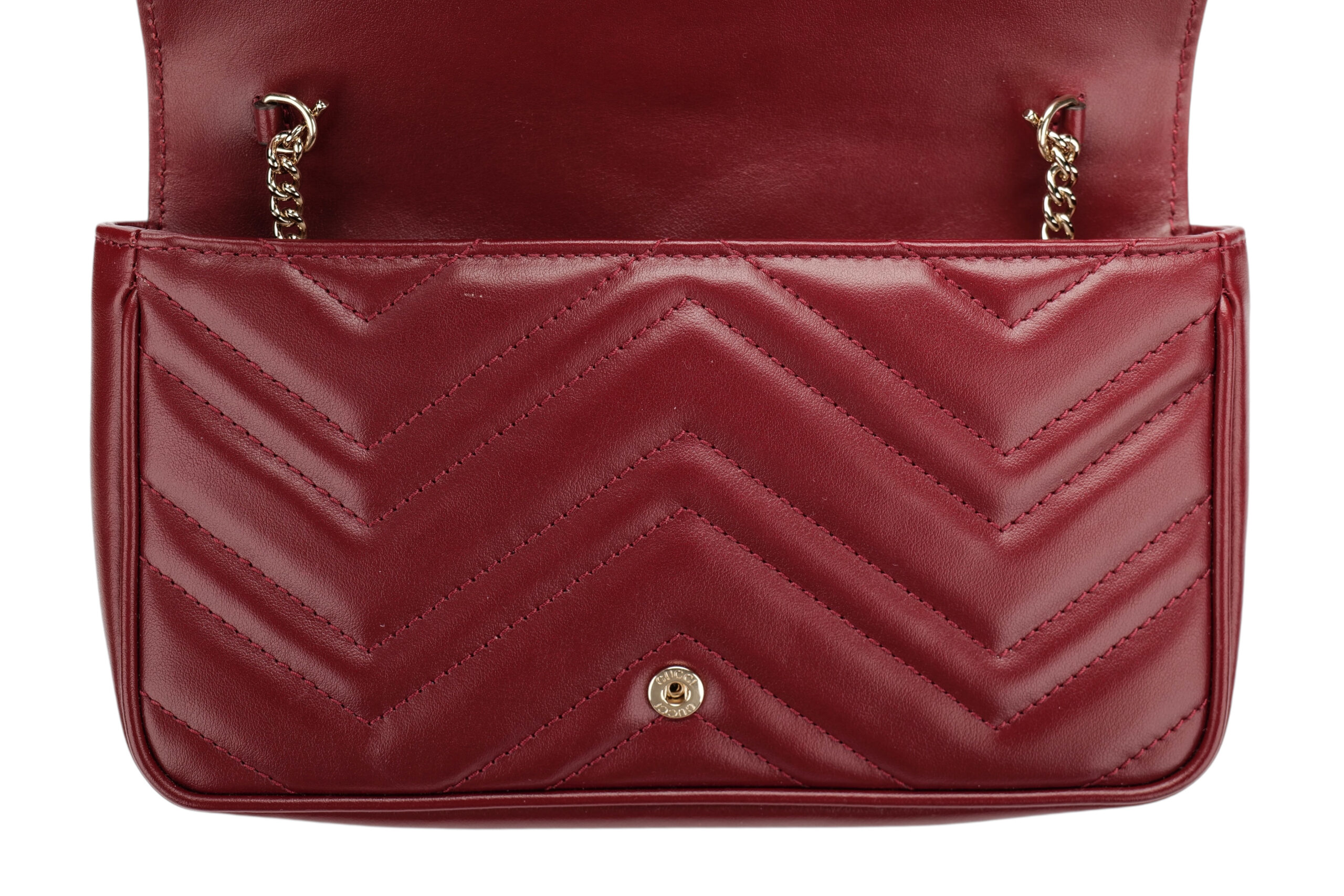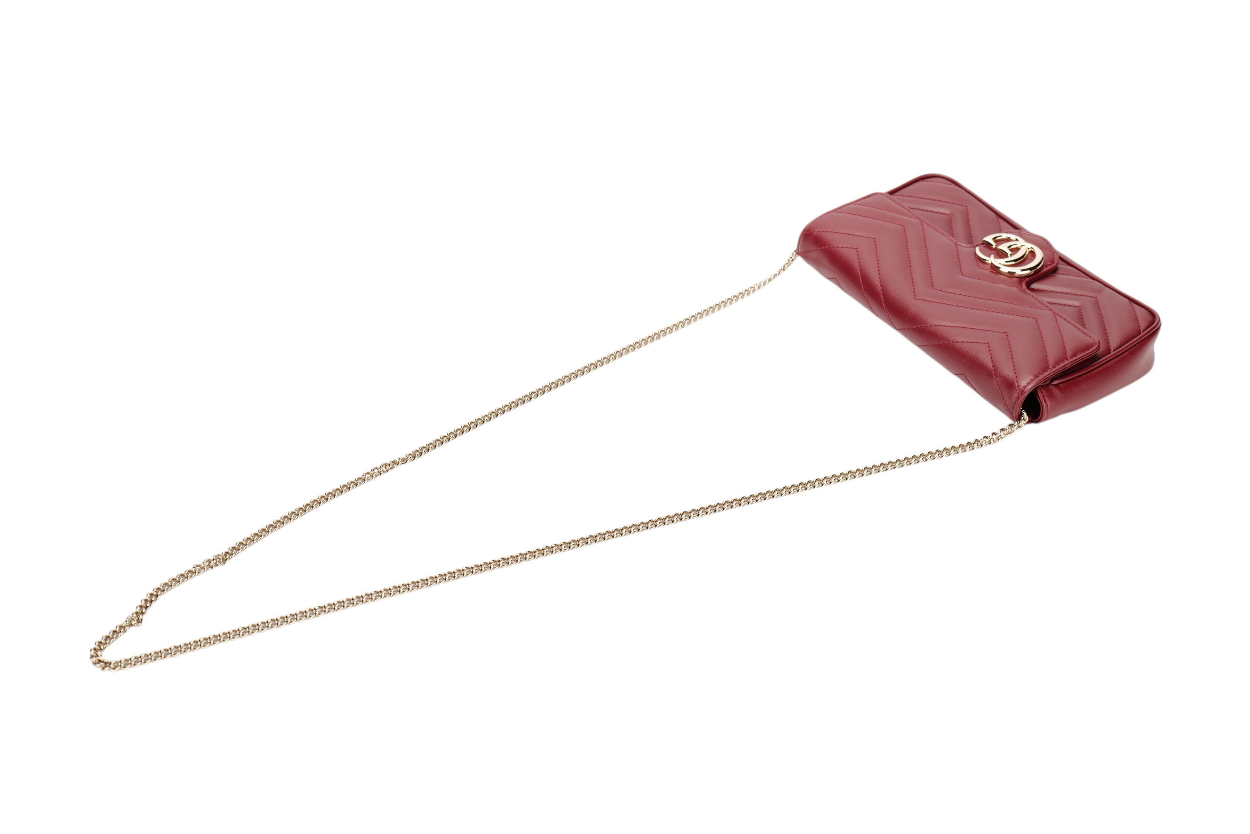 Gucci Marmont Wallet On Chain (WOC) Burgundy Leather Matelasse, Gold HardwareJanuary 9, 2026