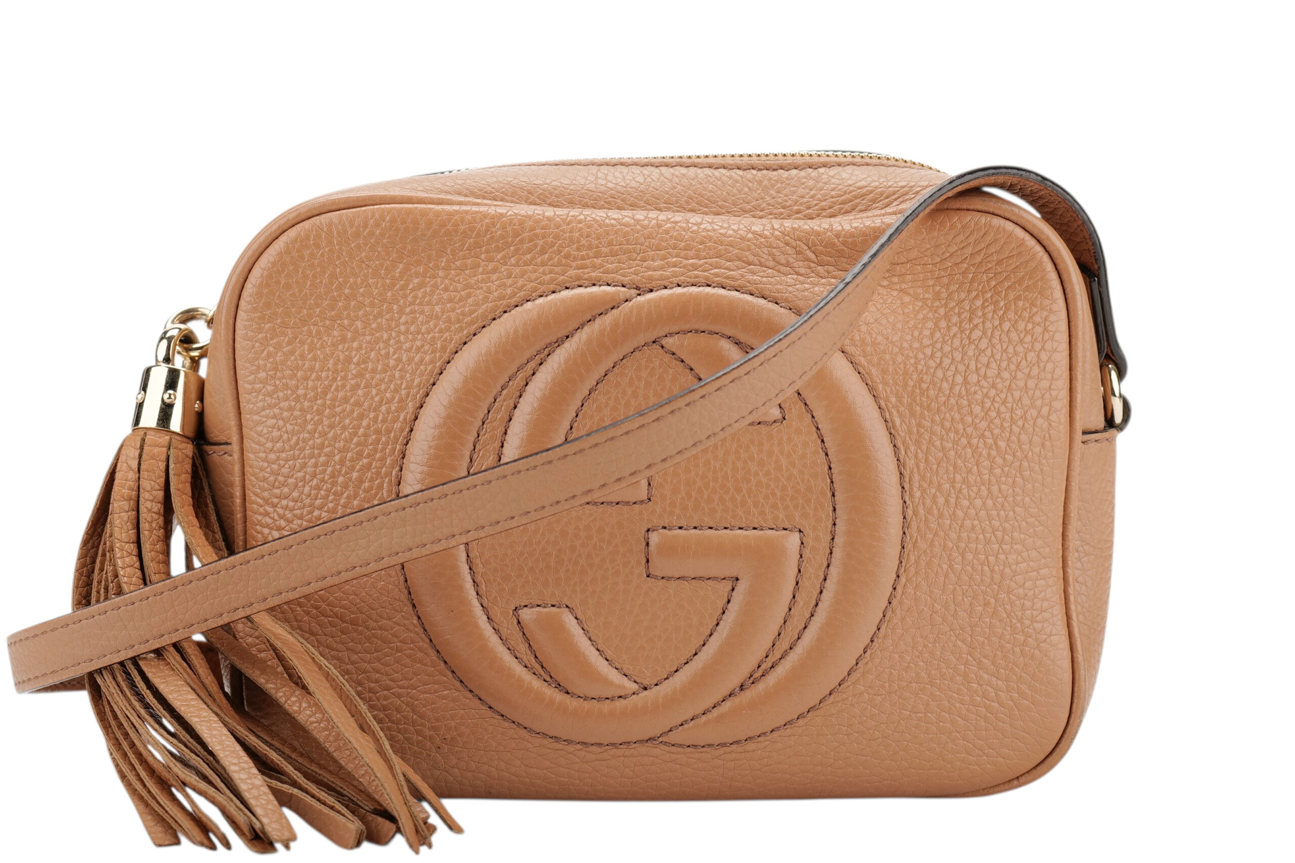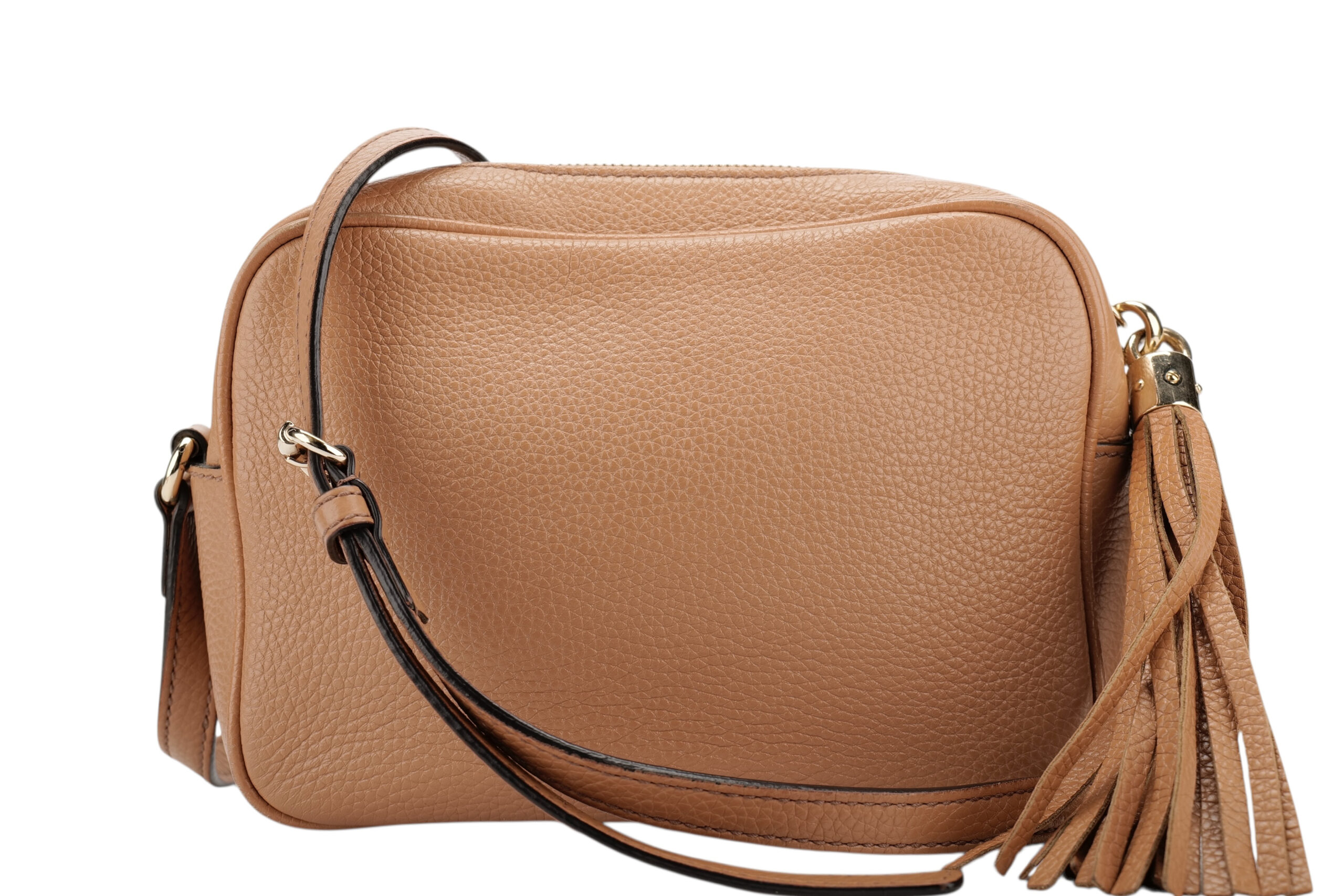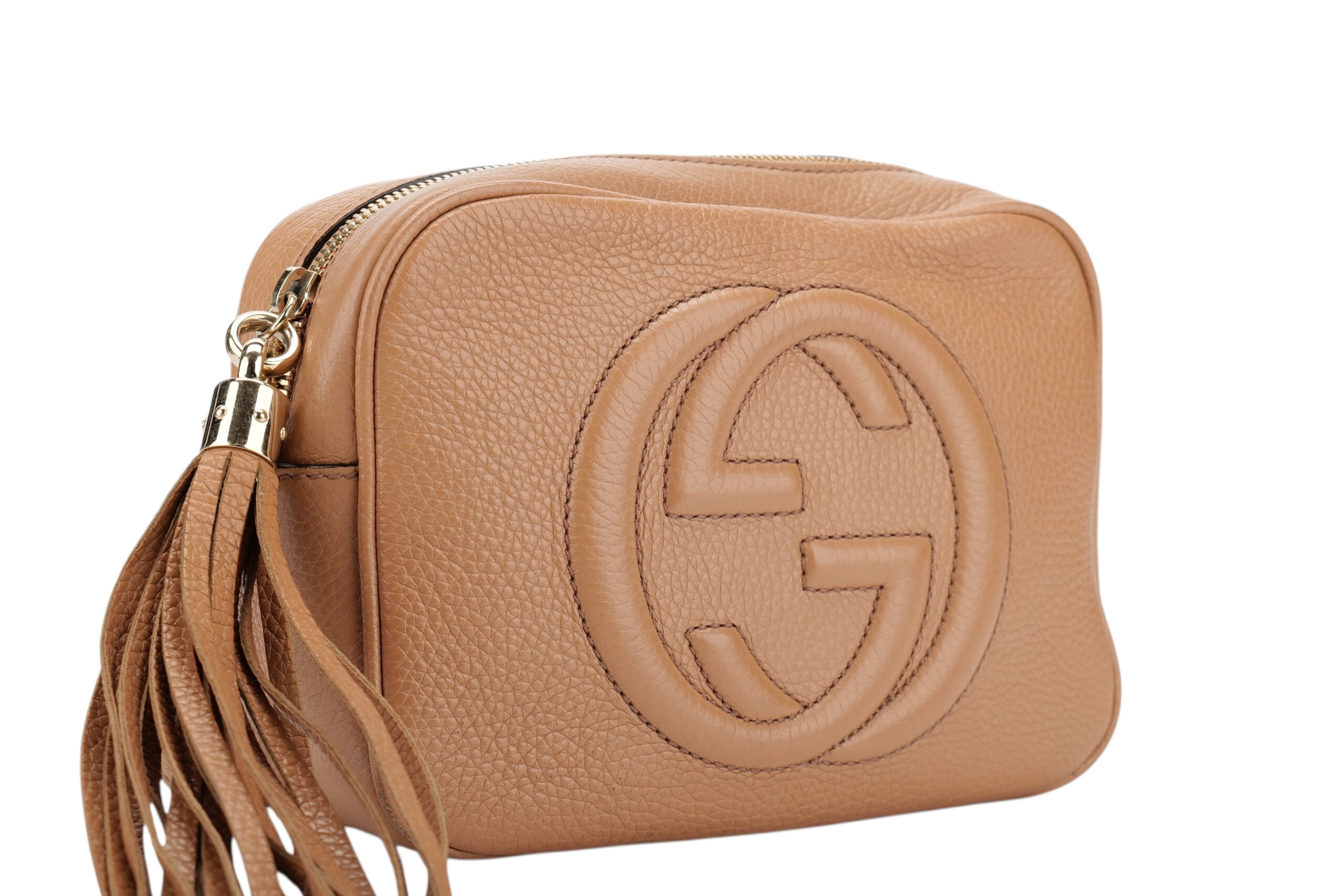 Gucci Soho Disco Crossbody Tassel Beige Leather Bag, Silver Hardware