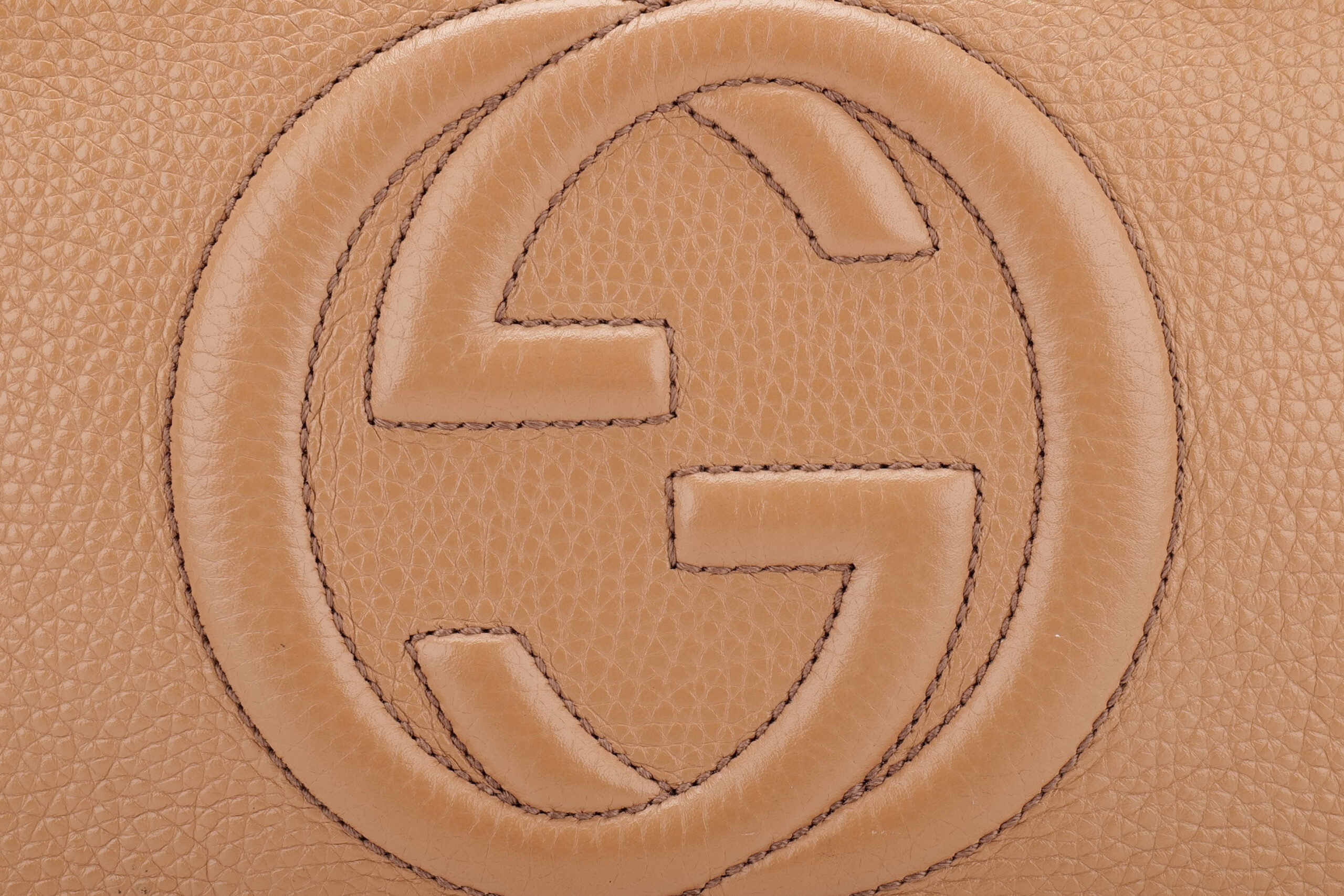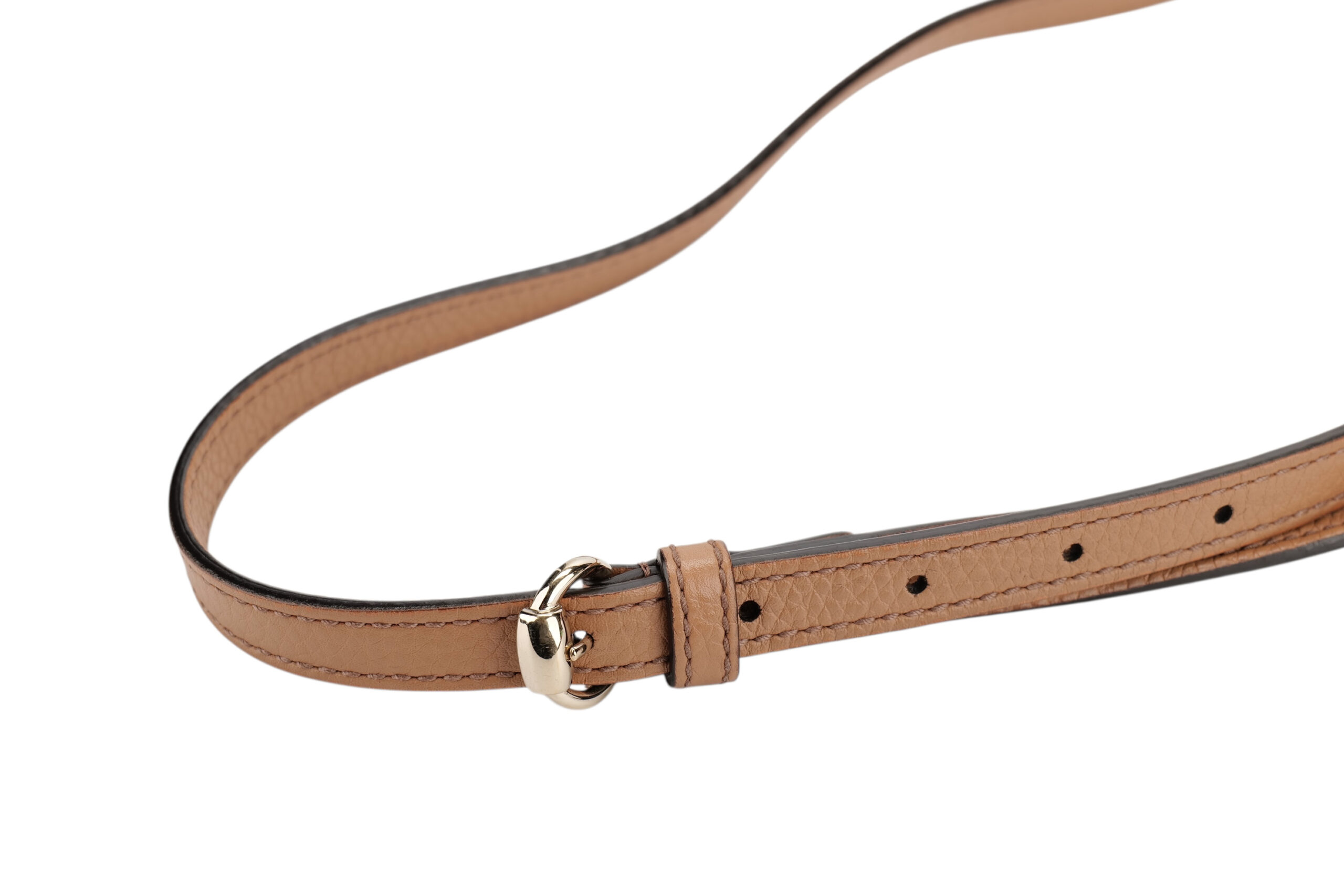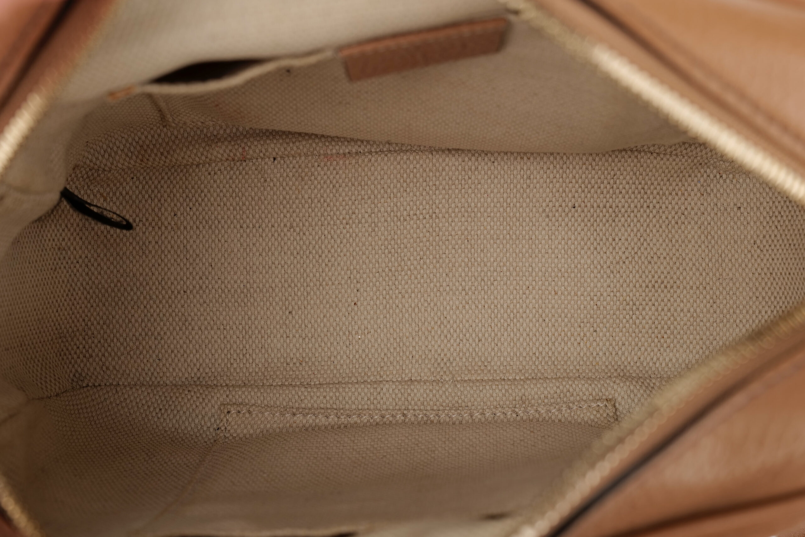 The Soho Disco bag from Gucci quickly became a brand classic upon its debut. A coveted, It-Girl bag, the Disco Soho is crafted from beige grained leather, featuring champagne gold tone hardware and a prominent GG stitched logo. Diverse and versatile, this stunning bag is spacious enough for all your essentials, making it a perfect everyday companion. The Soho’s minimal style makes it suited to almost any outfit – whether it’s day or night.