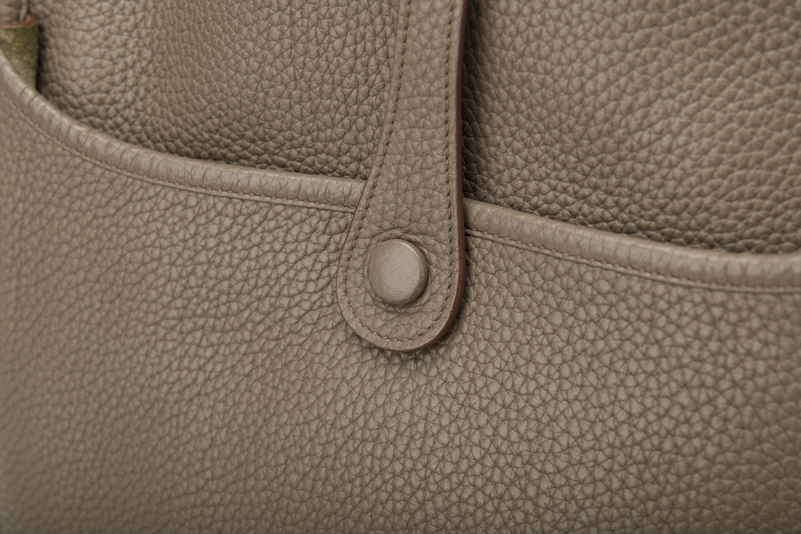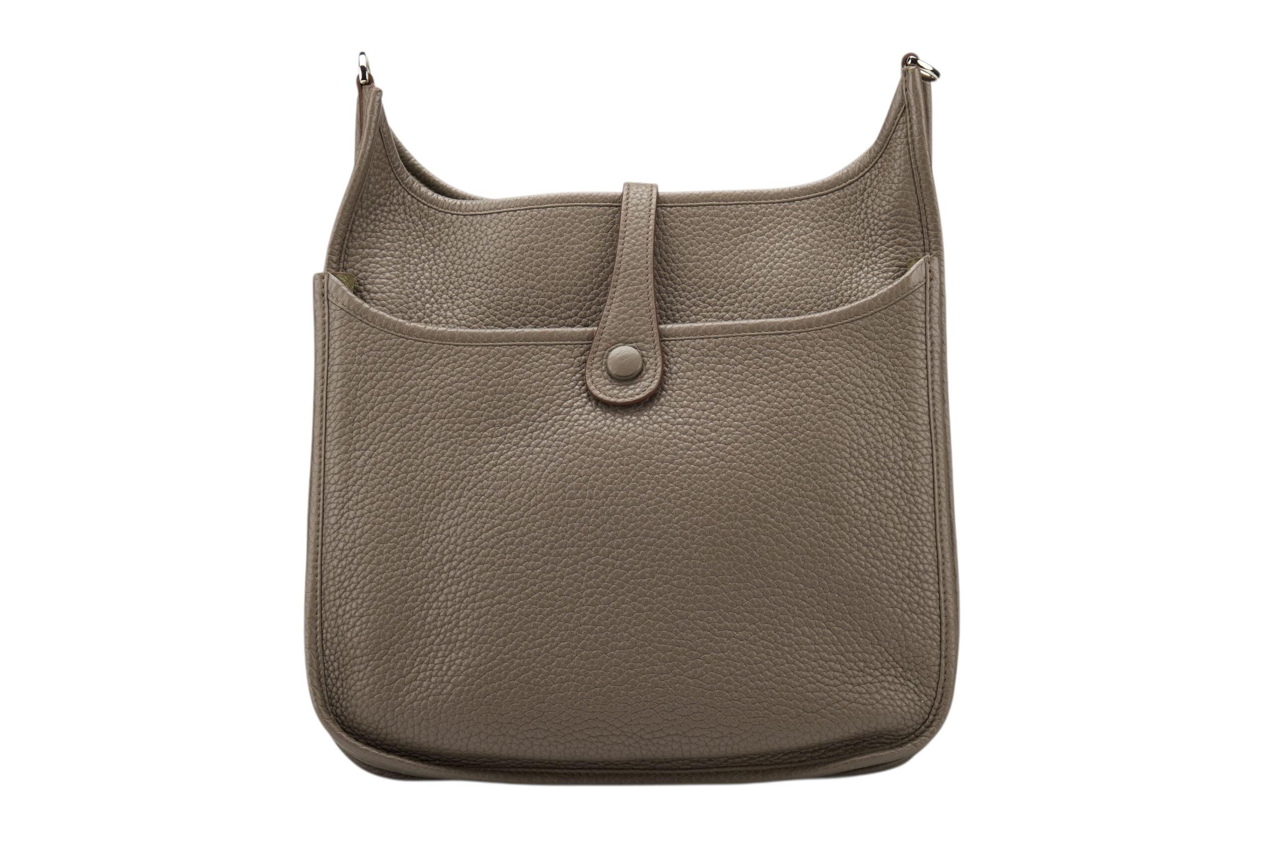 The Hermès Evelyne in Etoupe with Palladium Hardware (PHW) is a classic and practical handbag that exemplifies timeless elegance and functionality. Made from luxurious leather in a brown hue, this bag offers a soft yet durable texture, perfect for daily use. The palladium hardware provides a modern touch, enhancing its sophisticated look.