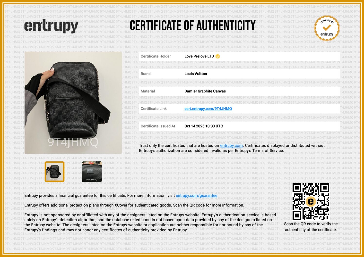 All bags sold via Love Prelove go through rigorous checks to ensure authenticity. All bags are sold with an authentication certificate either from Entrupy or Bababebi.