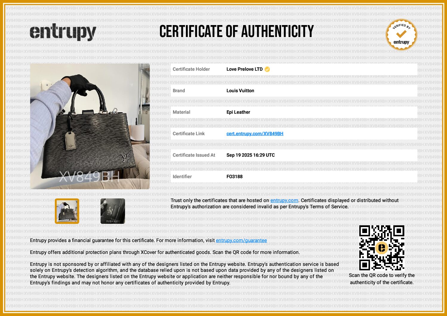 All bags sold via Love Prelove go through rigorous checks to ensure authenticity. All bags are sold with an authentication certificate either from Entrupy or Bababebi.