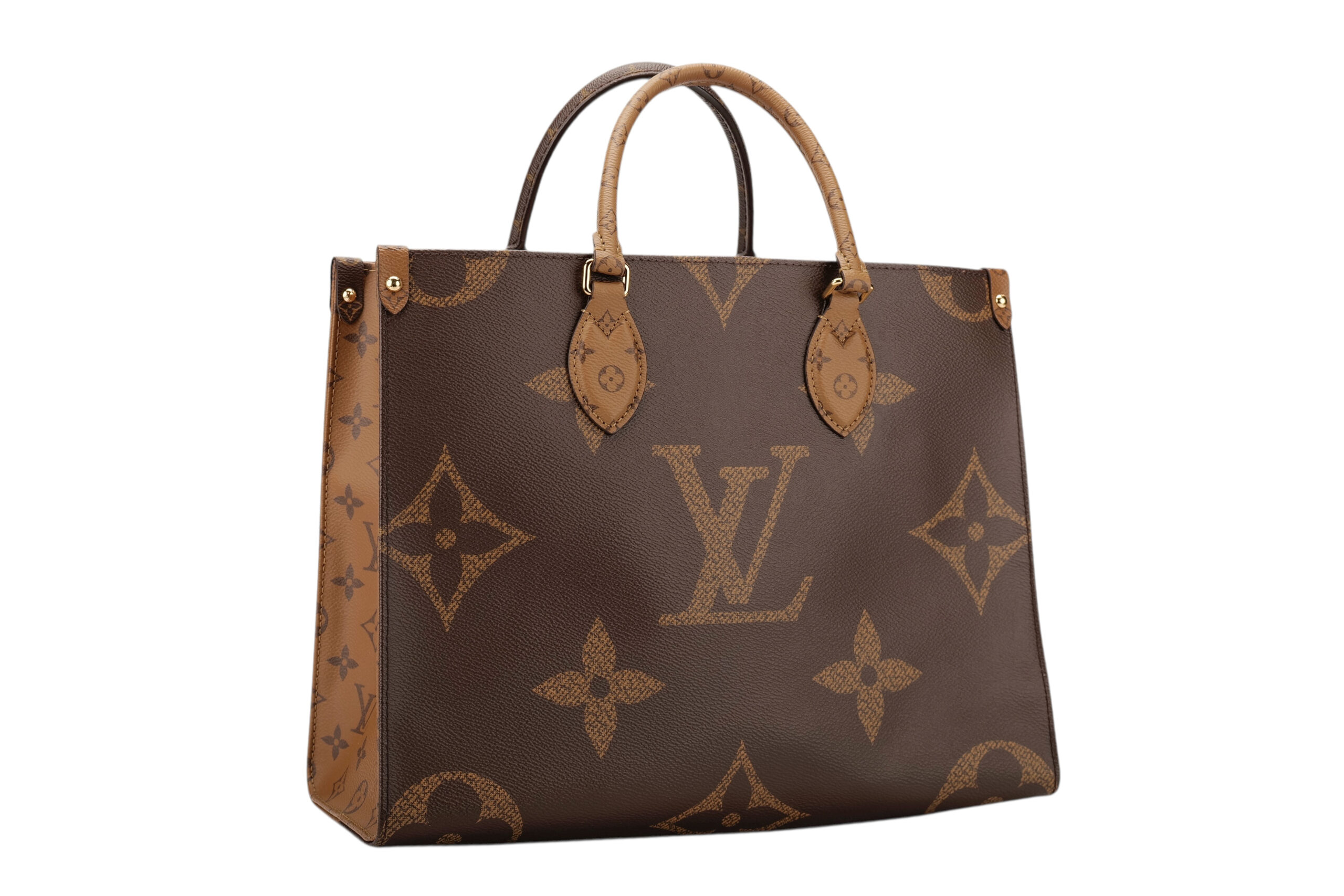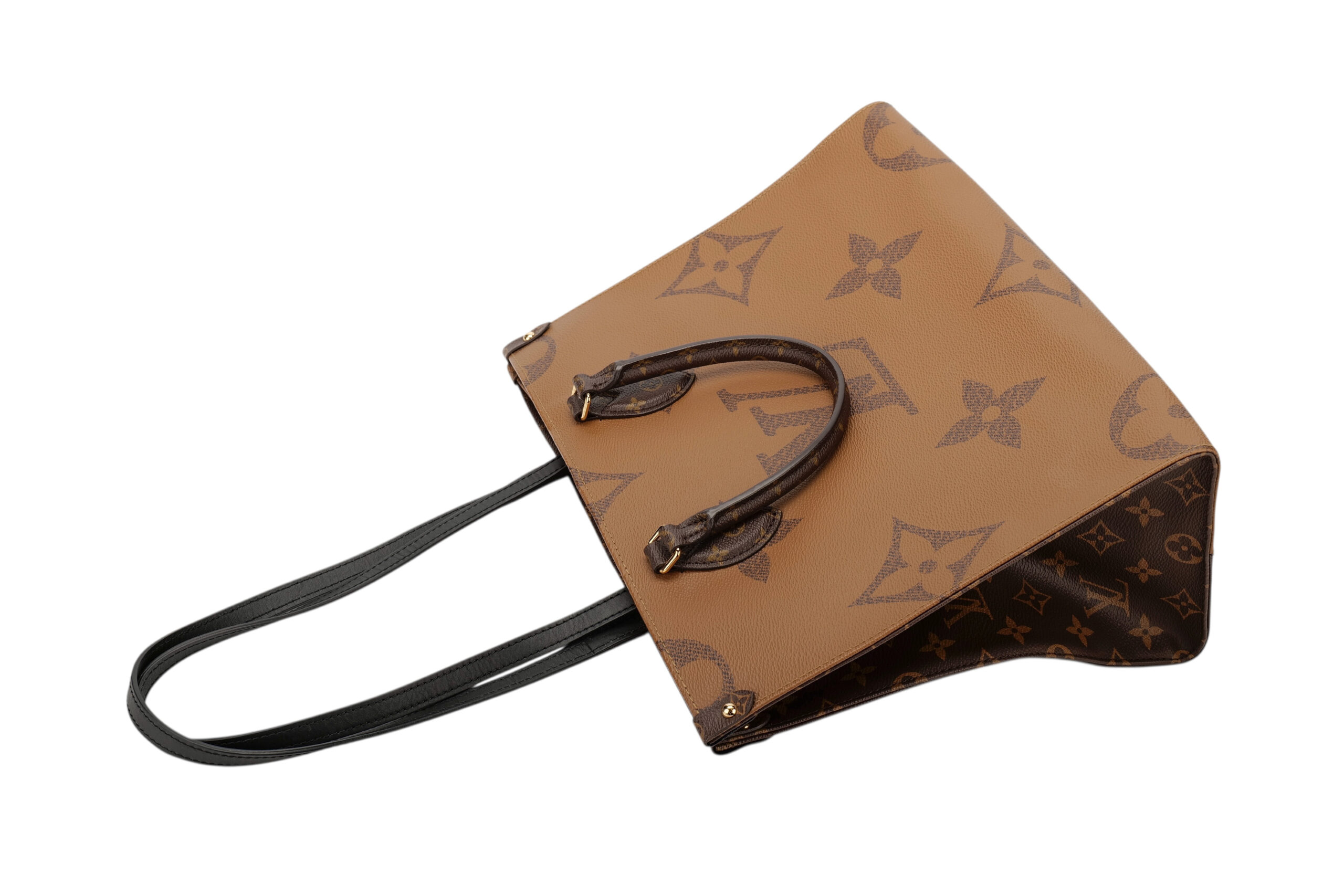 The name says it all with the OnTheGo MM bag. It takes care of business or shopping, with plenty of room for a busy woman’s essentials. With Giant Monogram canvas on one side and Monogram Reverse on the other, it is virtually two bags in one. Twin Toron top handles and two shoulder straps offer several different carry styles for extra versatility.