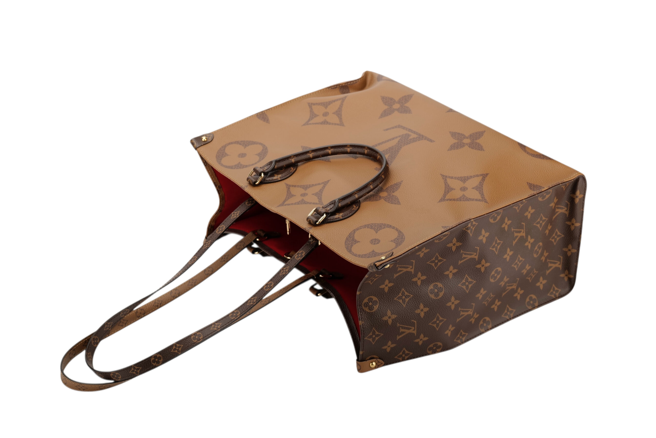 The name says it all with the OnTheGo MM bag. It takes care of business or shopping, with plenty of room for a busy woman’s essentials. With Giant Monogram canvas on one side and Monogram Reverse on the other, it is virtually two bags in one. Twin Toron top handles and two shoulder straps offer several different carry styles for extra versatility.