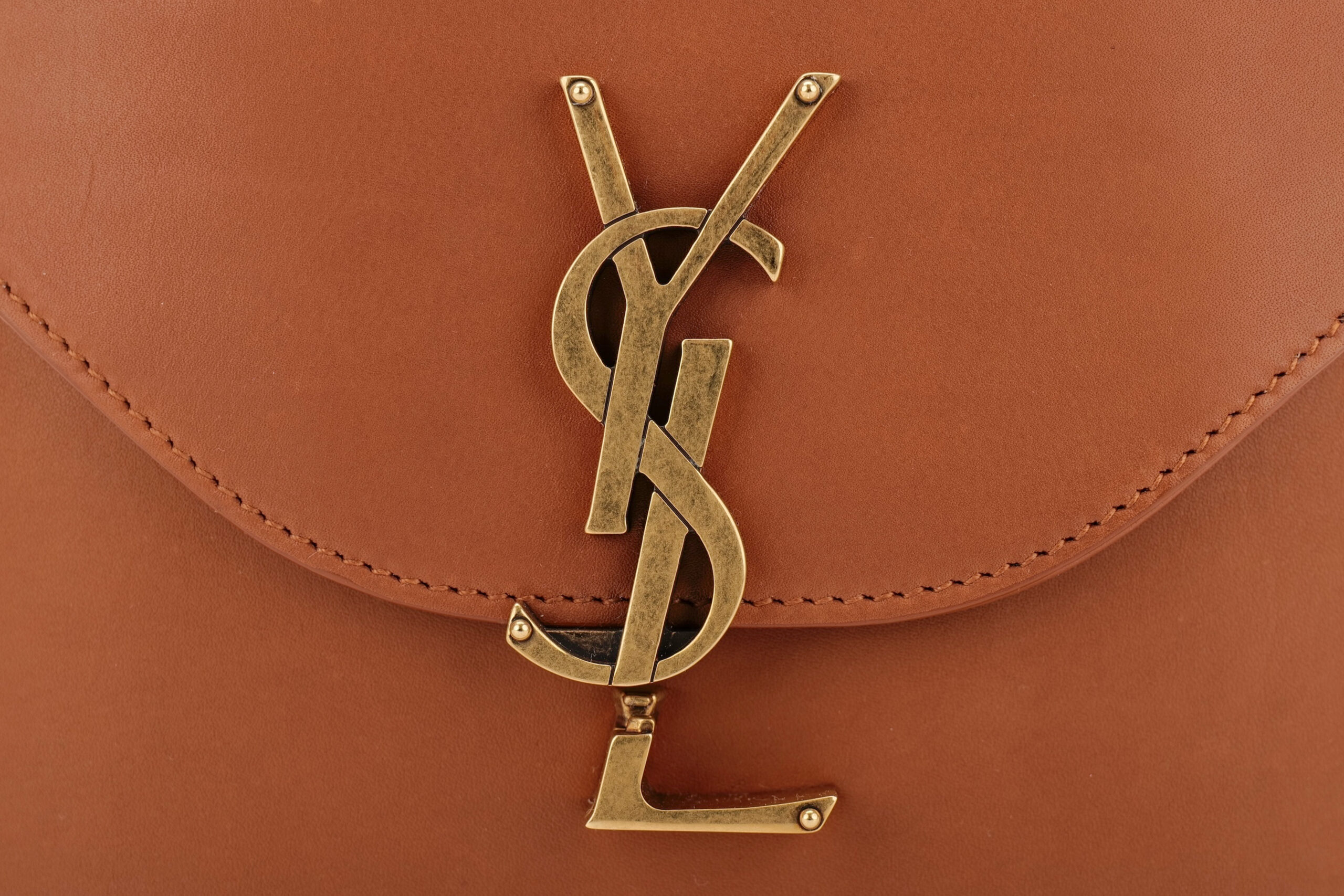 Saint Laurent June Box Crossbody Brick Brown Calfskin, Gold Hardware