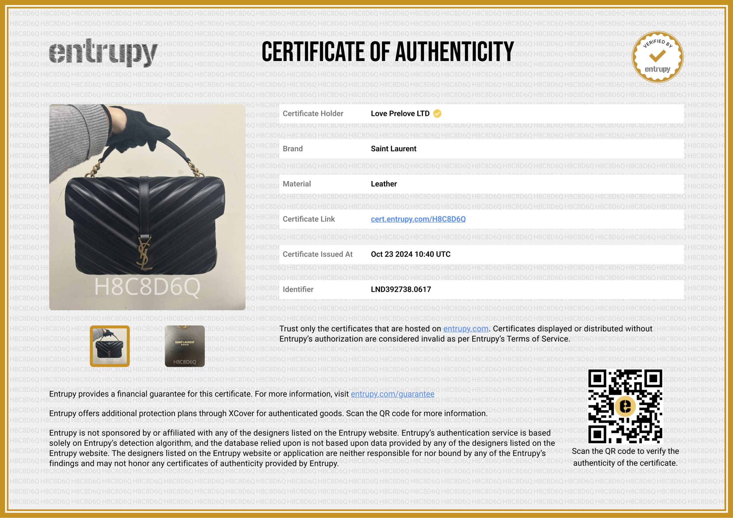 All bags sold via Love Prelove go through rigorous checks to ensure authenticity. All bags are sold with an authentication certificate either from Entrupy or Bababebi.