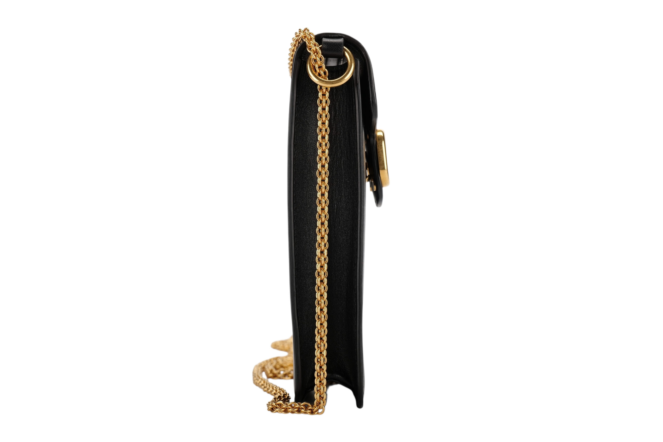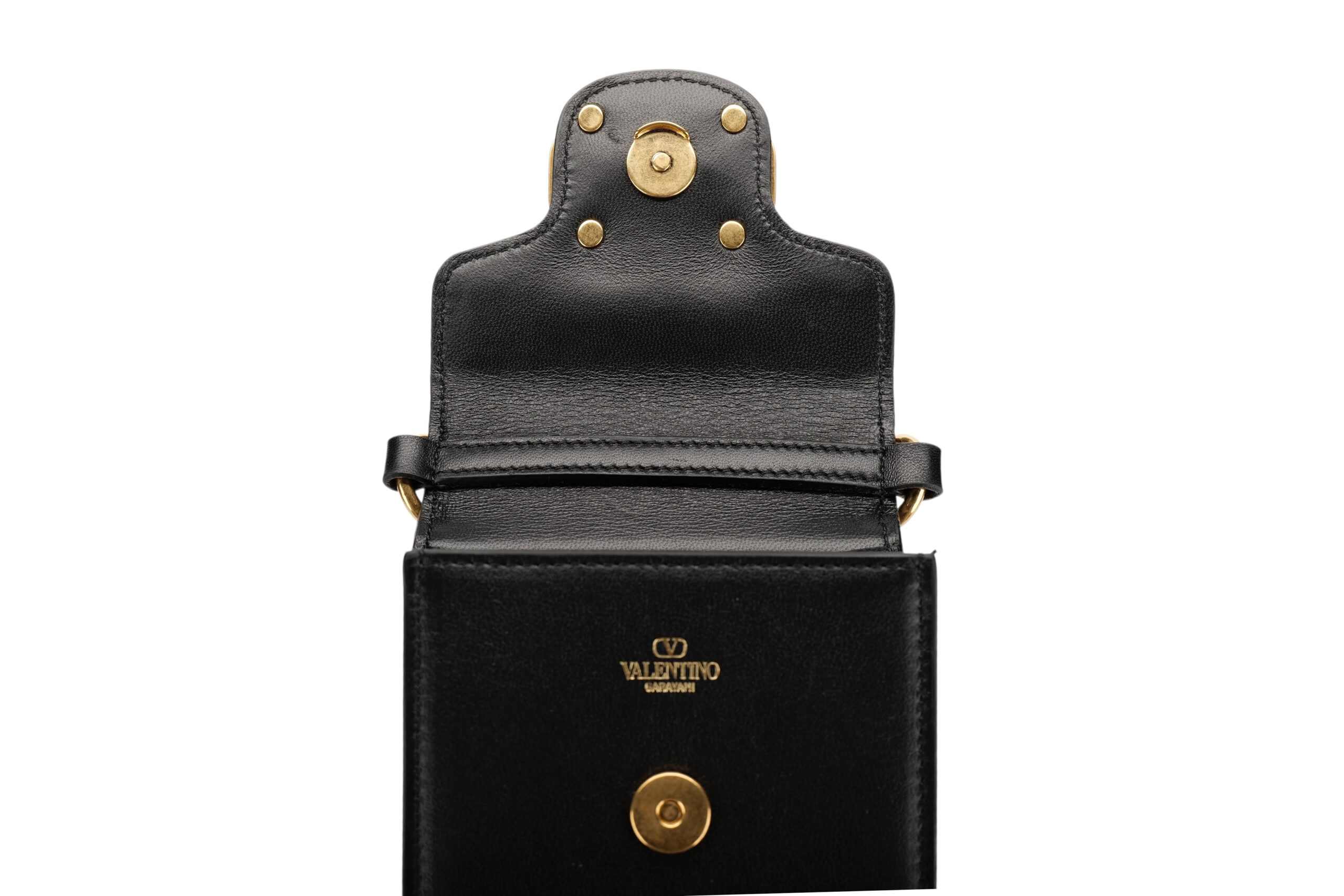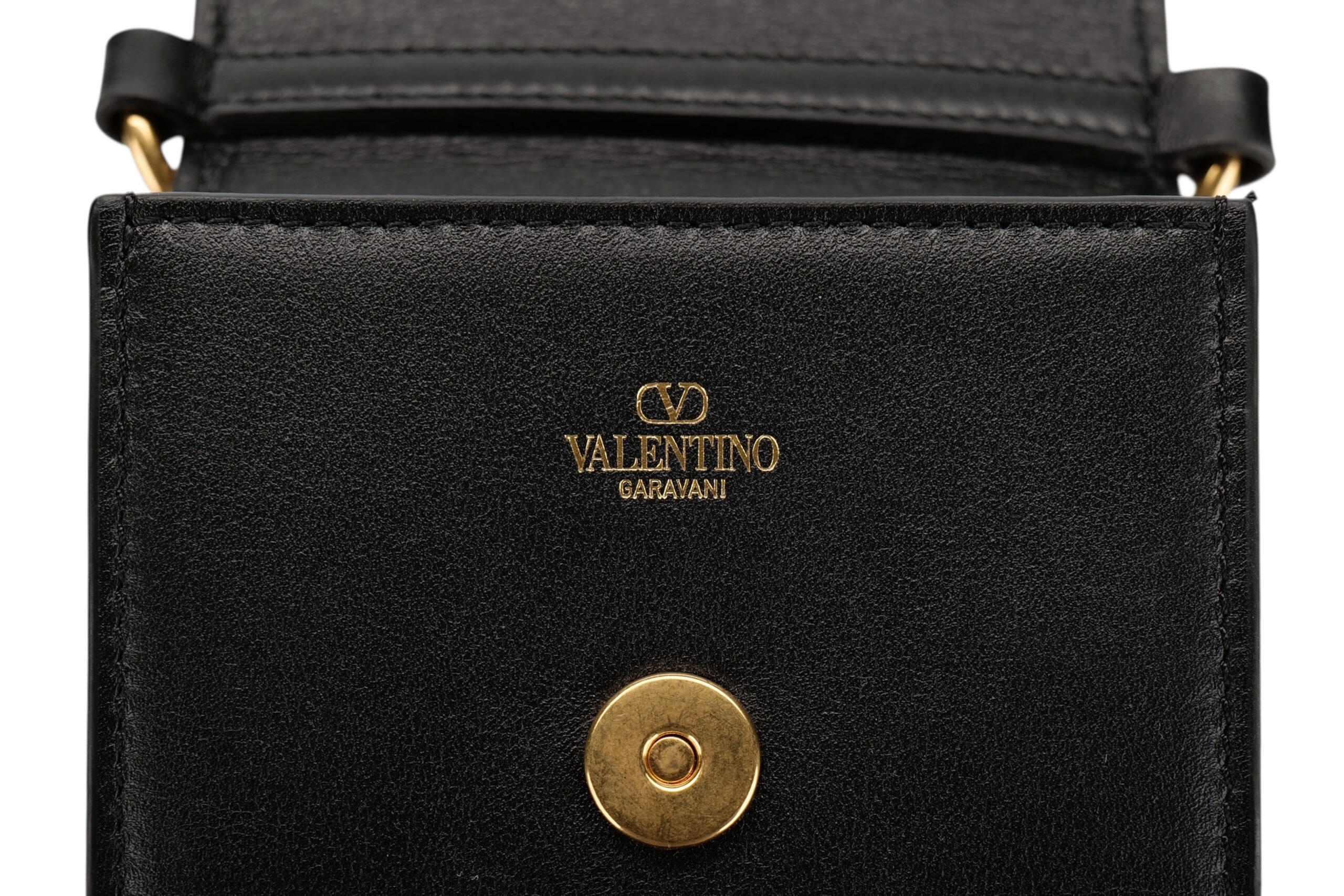 Valentino VLogo Crossbody Phone Case Black Leather Chain, Gold Hardware