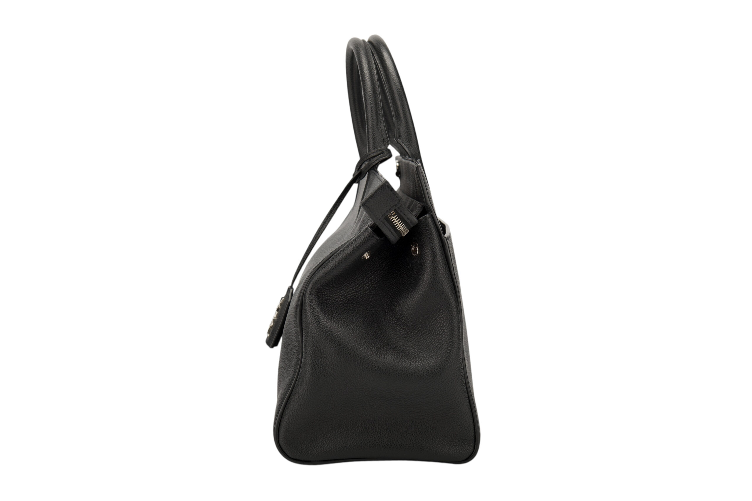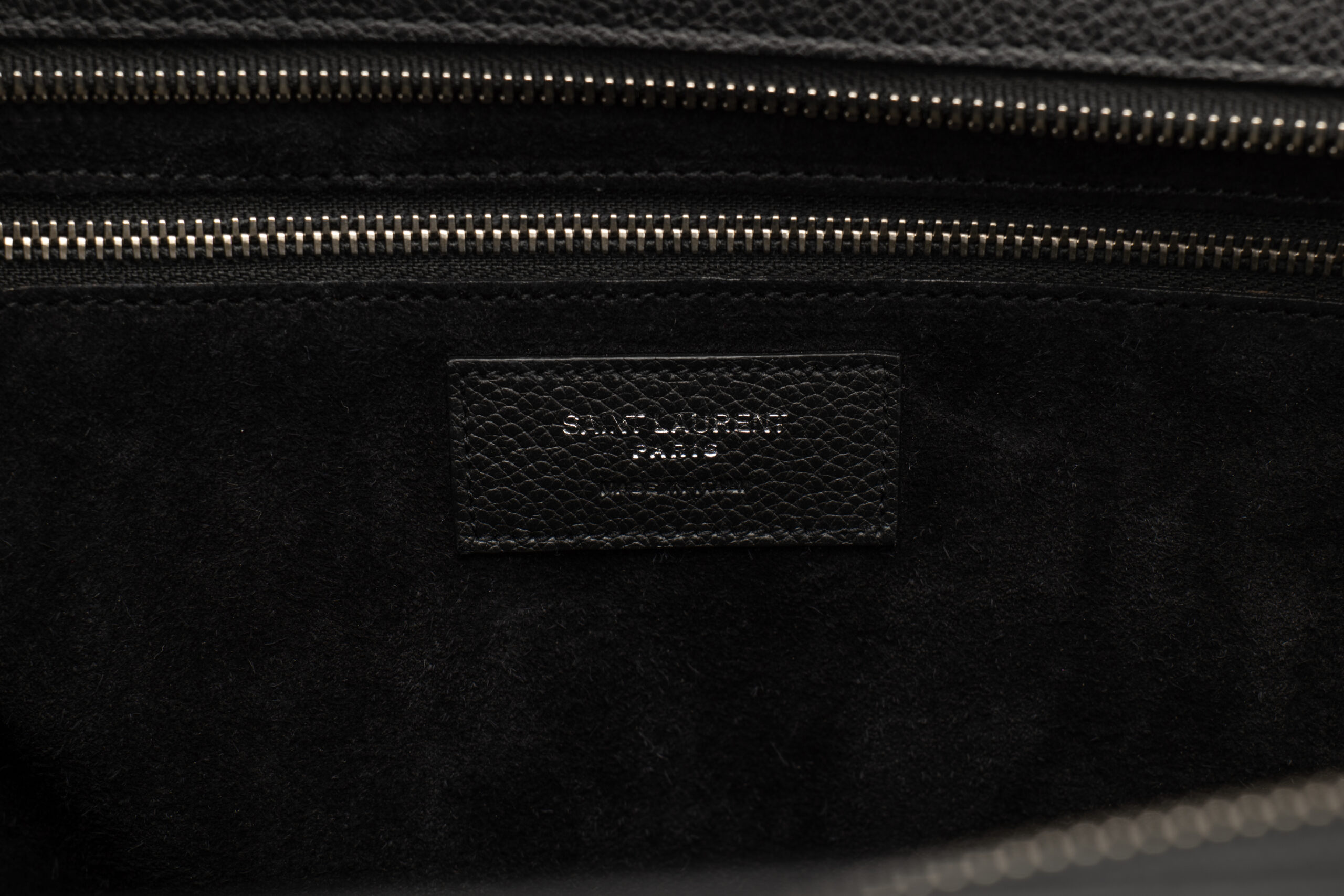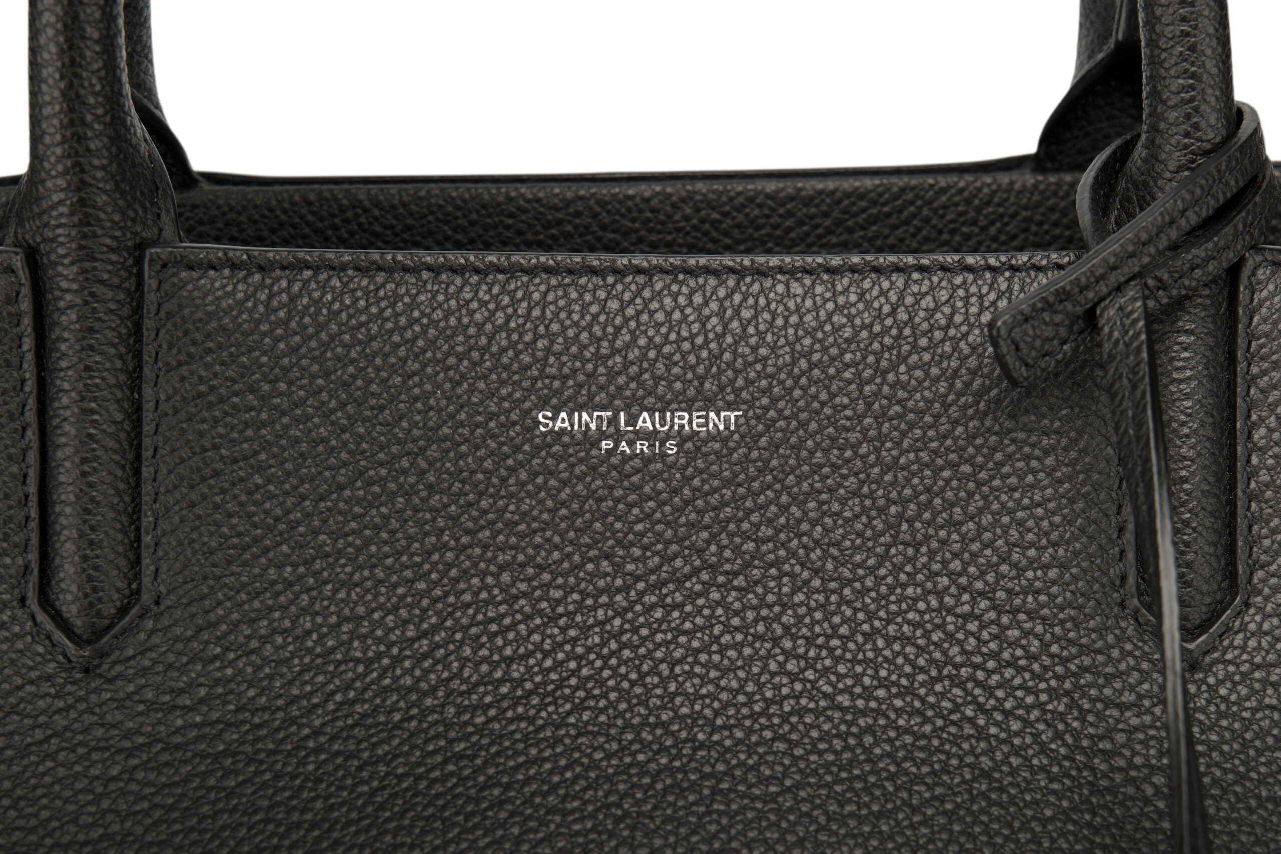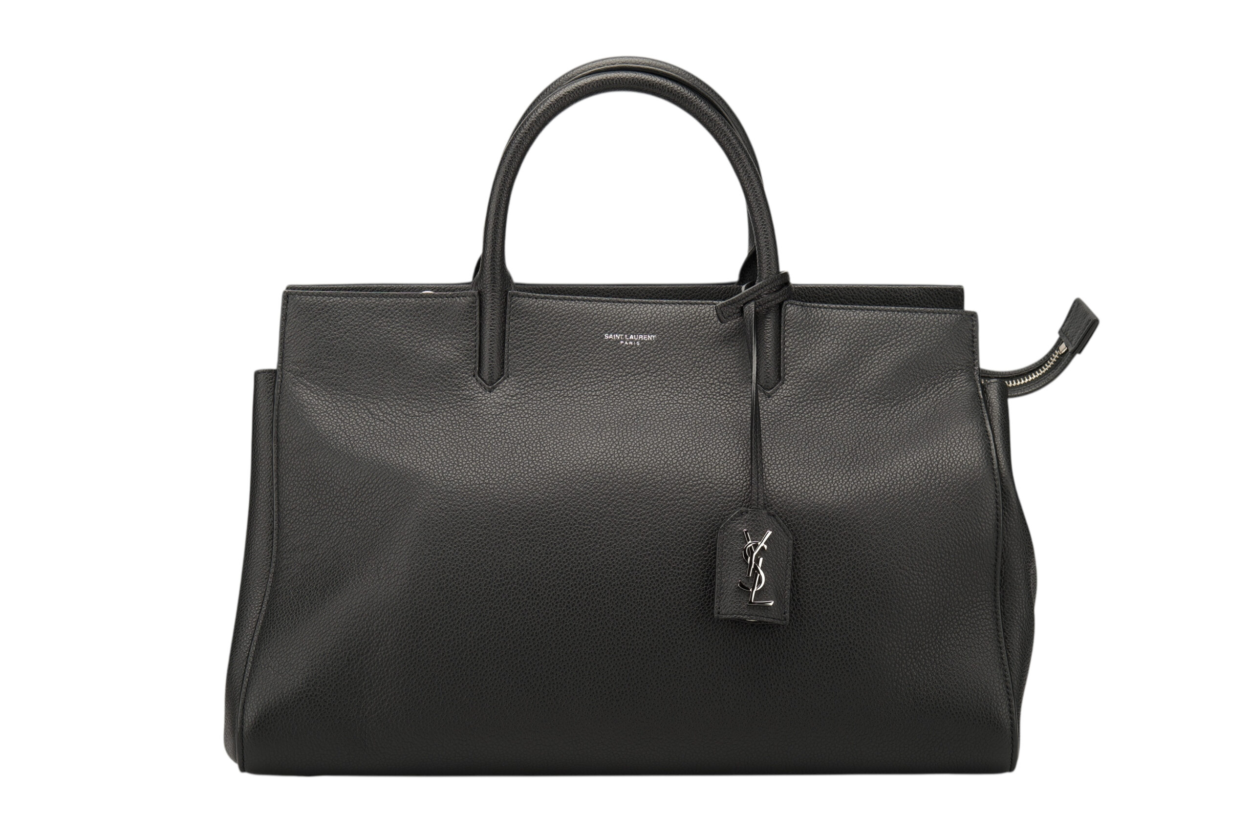 YSL Cabas Rive Gauche Black Grained Leather handbag, Silver Hardware