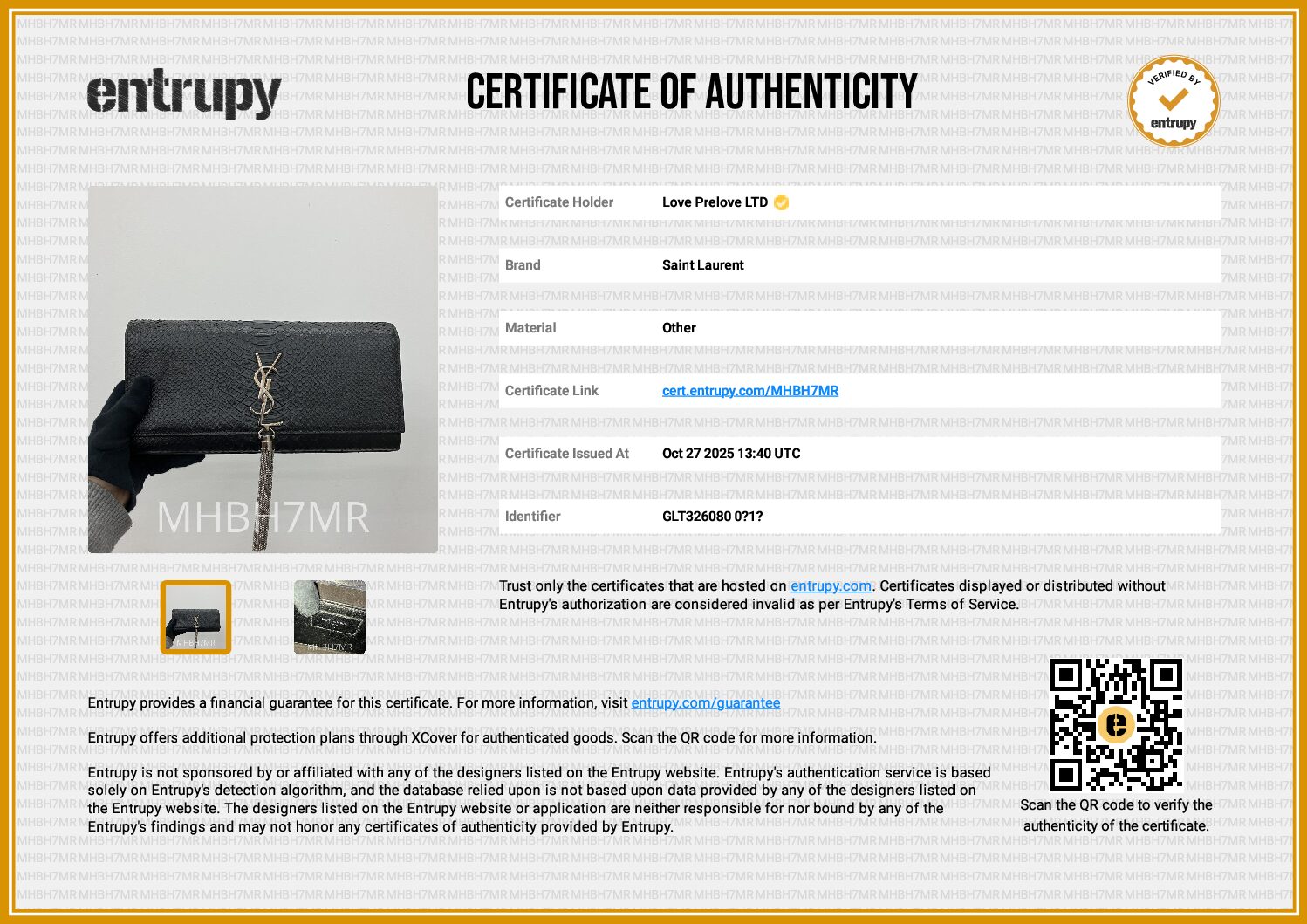 All bags sold via Love Prelove go through rigorous checks to ensure authenticity. All bags are sold with an authentication certificate either from Entrupy or Bababebi.