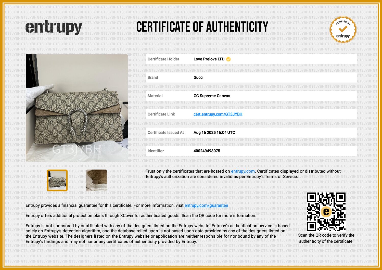£2,100.00Gucci Dionysus Large Supreme Canvas Chain Handbag, Ruthenium HardwareSeptember 1, 2025 -