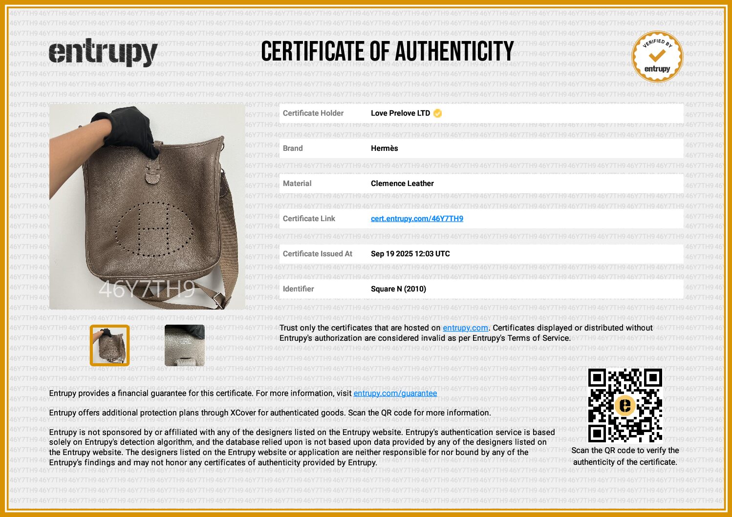 £2,999.00Hermes Evelyne 29 Etoupe Clemence Leather, Palladium HardwareSeptember 27, 2025 -