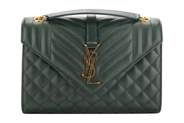 Saint Laurent Medium Envelope Flap Grain De Poudre Green Matelasse Leather, Gold Hardware
